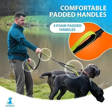 Hands Free Double Dog Lead Splitter – Dual Dog Lead for Medium and Large Breeds – Leash for 2 Dogs with Padded Handles, Reflecti
