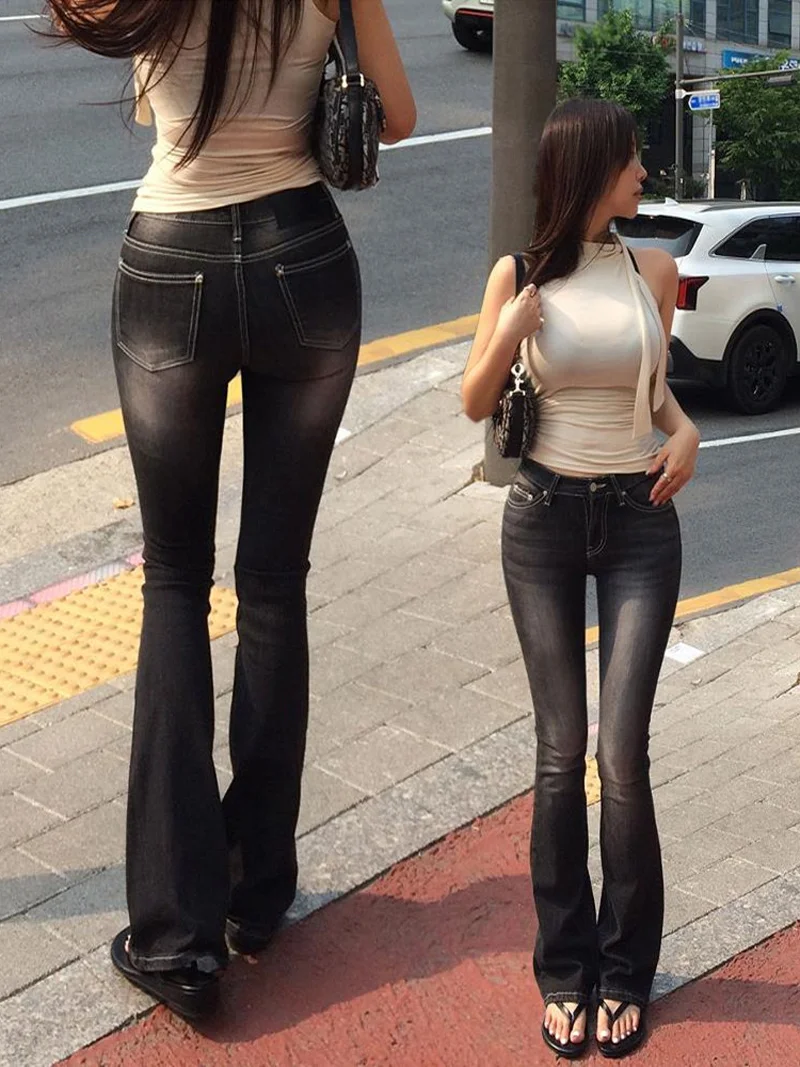 High Waist Sexy Split Denim Jeans Long Leg Lengthening Bell Bot Cotton Stretch Denim Pants for Women Spring Autumn