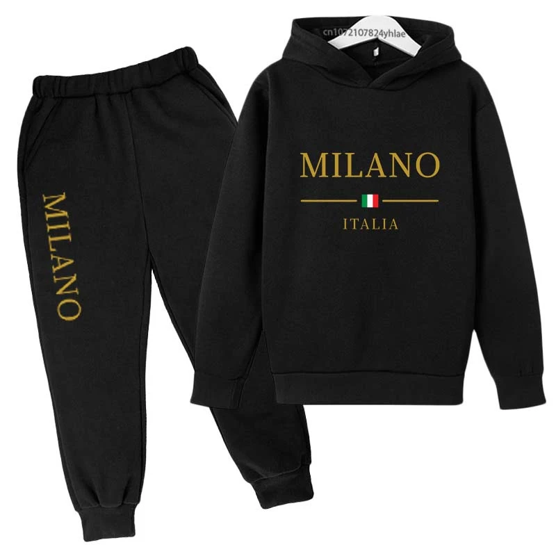 Kids Fashion Brand Letter Print 2pcs Pullover Hoodie+Pants Tracksuits 2-13 Years Boys Girls Casual Outfits Children Clothes Sets