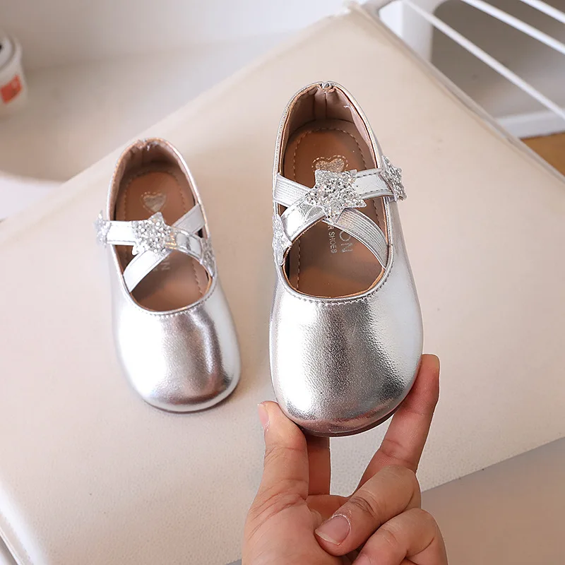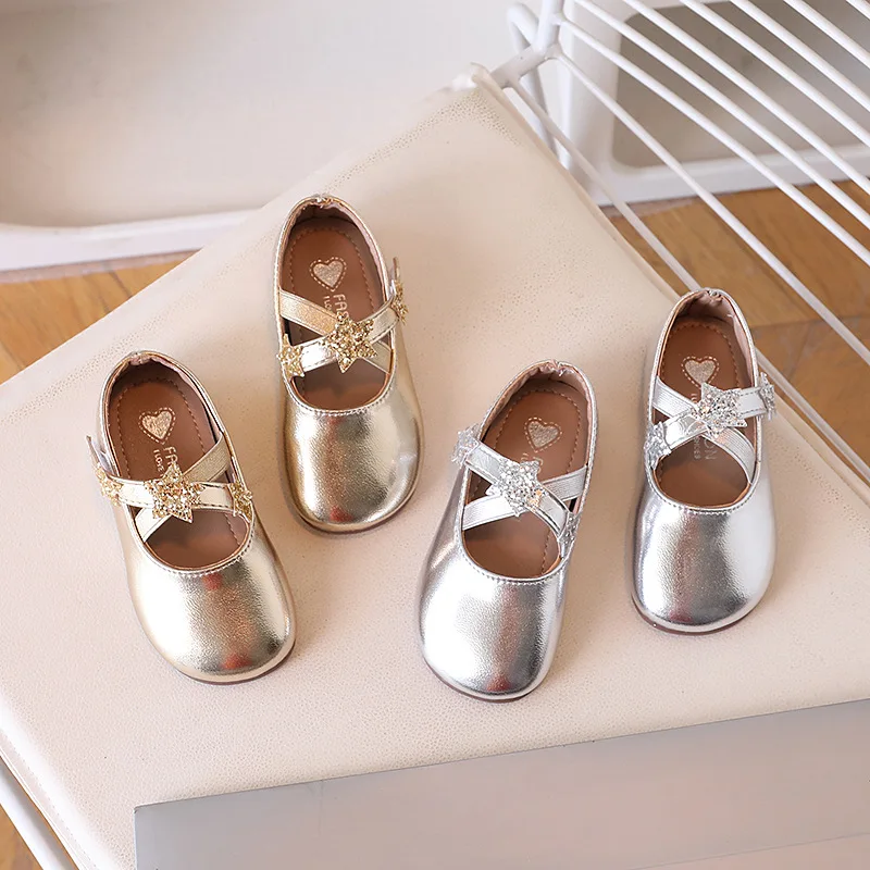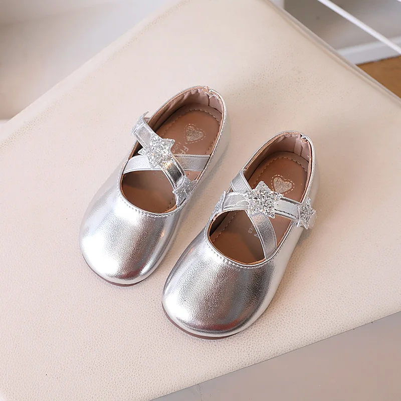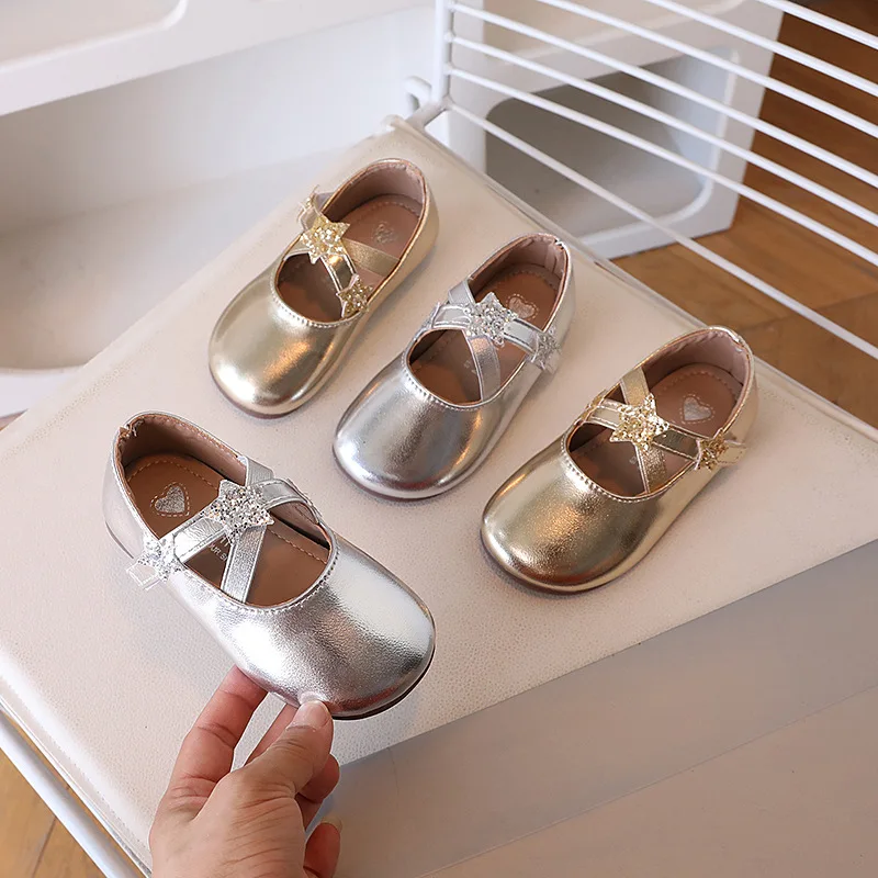Kids Square Dance Performance Shoes Gold Silver Solid Color Girls Princess Shoe with 2025 New Girls Leather Shoes Soft Sole