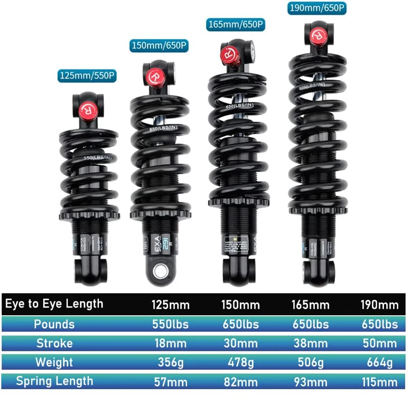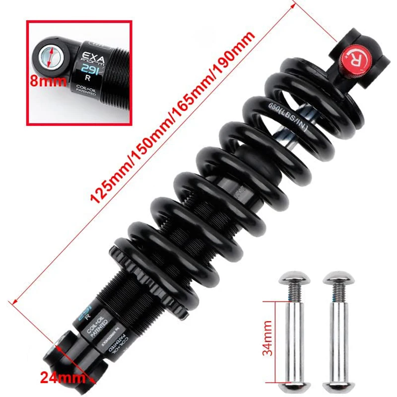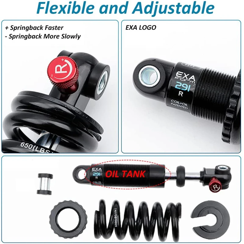 KS EXA Bicycle Coil+Oil 291R Shock Absorber Adjustable Damping Hydraulic Bike Rear Shocks for MTB Electric Scooter Motocycles