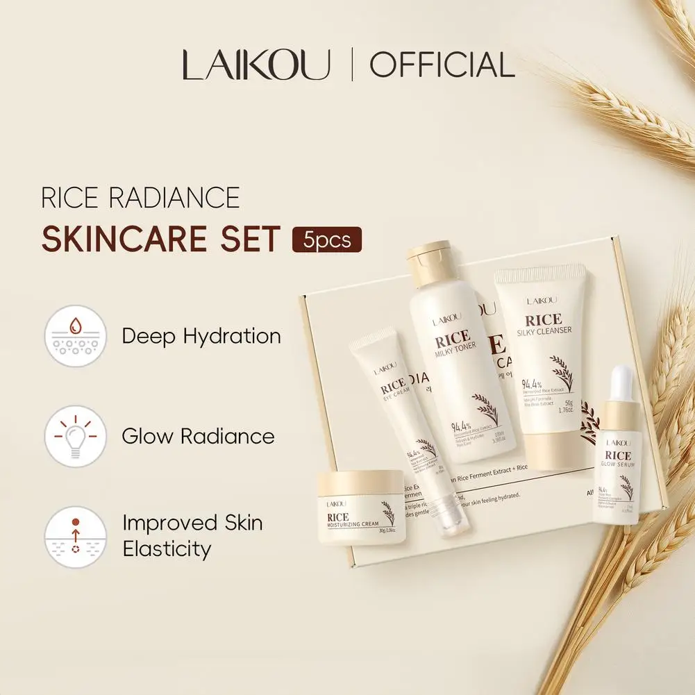 LAIKOU Skincare Gift Set Rice Extract Moisturizing Eye Cream Cleanser,Toner Lotion Brightening Anti Aging Skin Care Essence