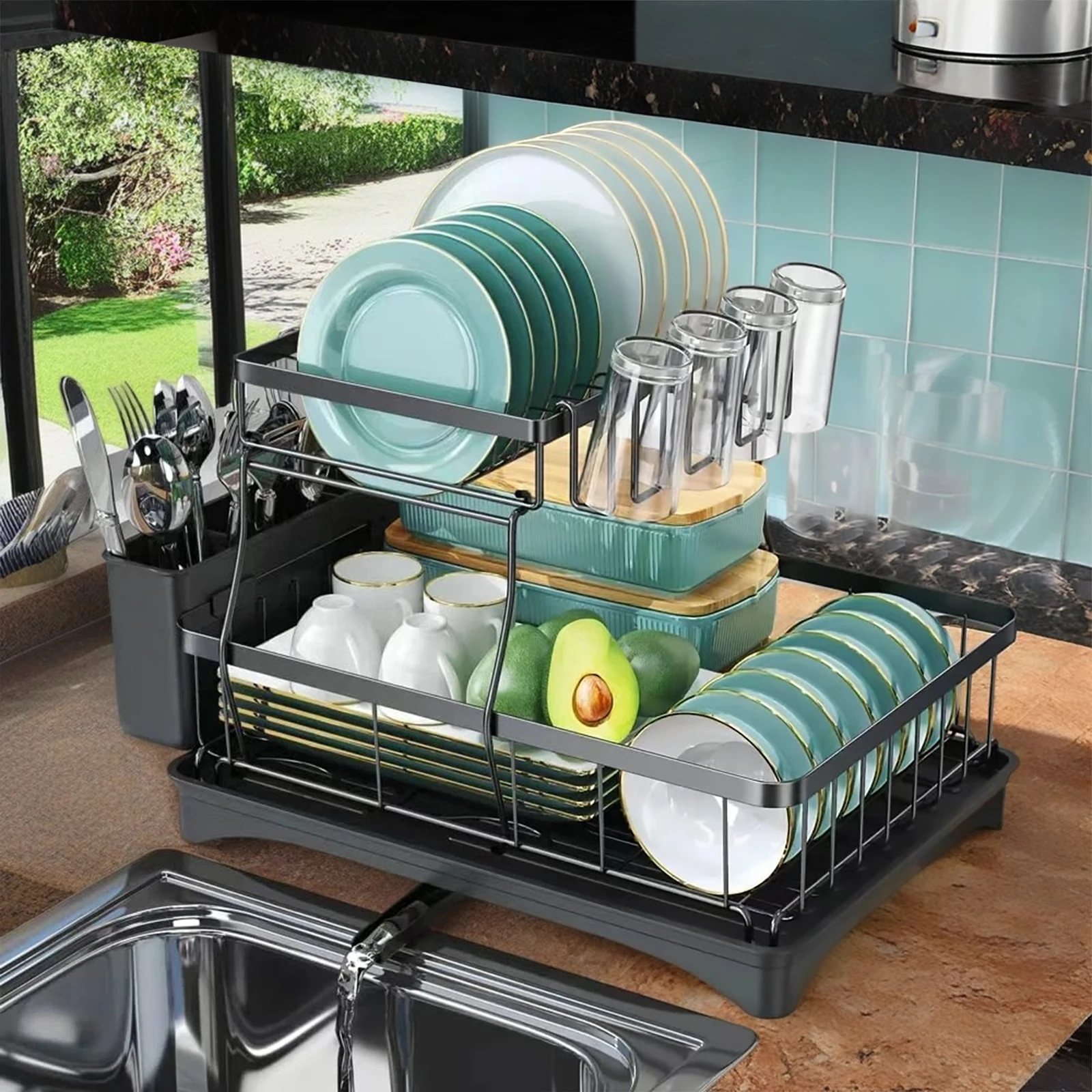 Be the first to review “Large 2-tier dish drying rack for kitchen countertops, removable large-capacity dish draining rack”