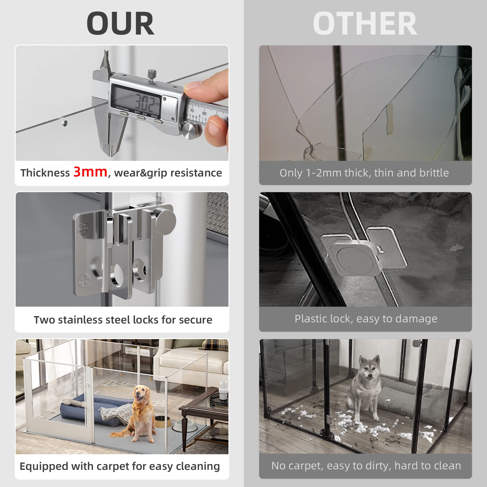 Large Acrylic Dog Playpen Fence, 6 Panels, Heavy Duty Pet Kennels Crate, Whelping Box with Waterproof Mat