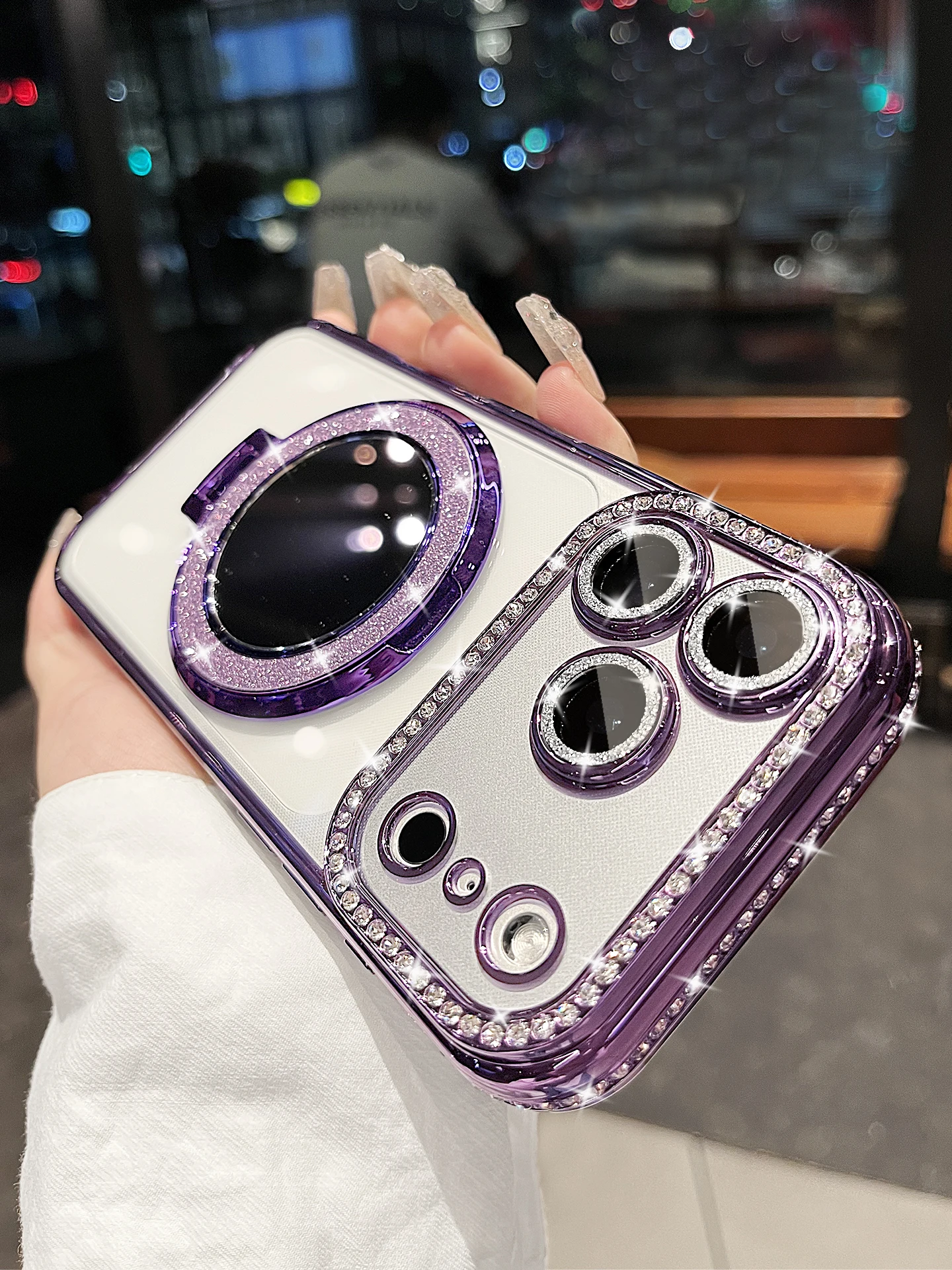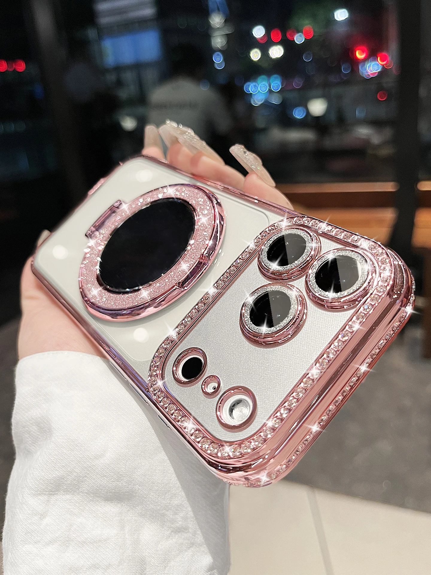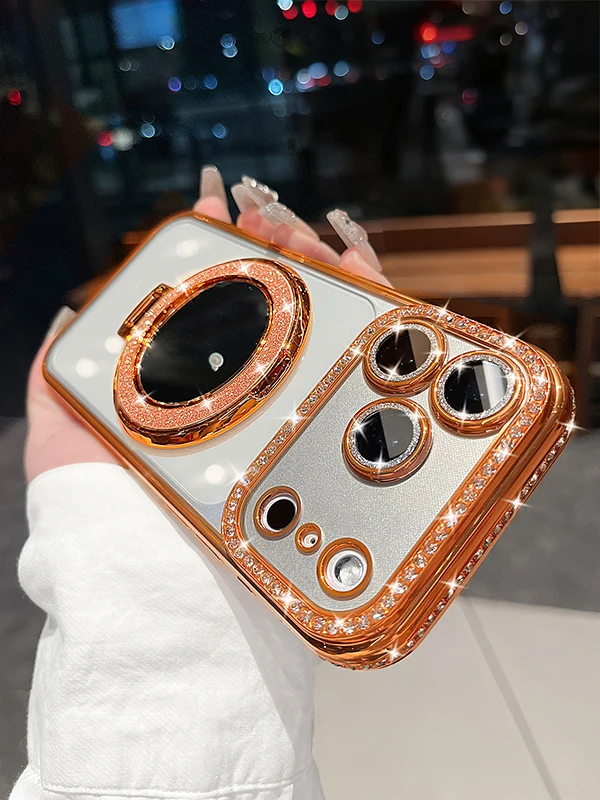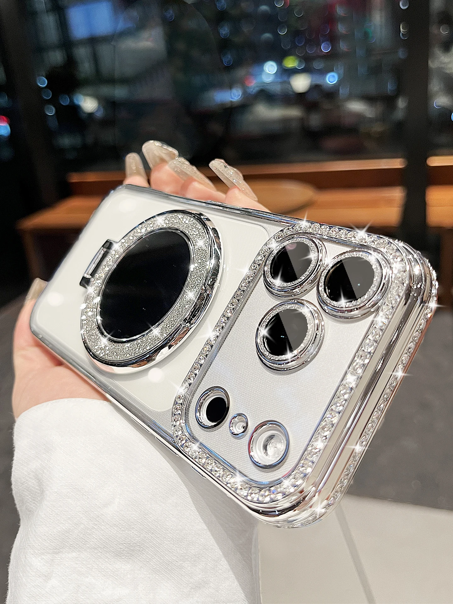 Luxury Diamond Clear Glitter For Magsafe Phone Case For iPhone 17 16 15 14 13 12 11 Pro Max Mirror Magnetic Holder Stand Cover