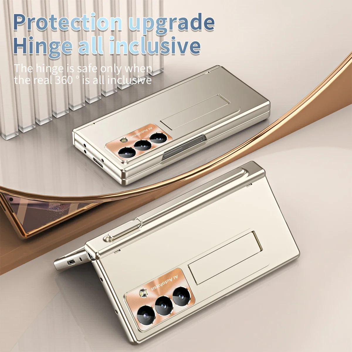 Luxury Phone Case with Pen For Samsung Galaxy Z Fold 4 5 6 7 Electroplated Glass Film Hinge Protection Cover