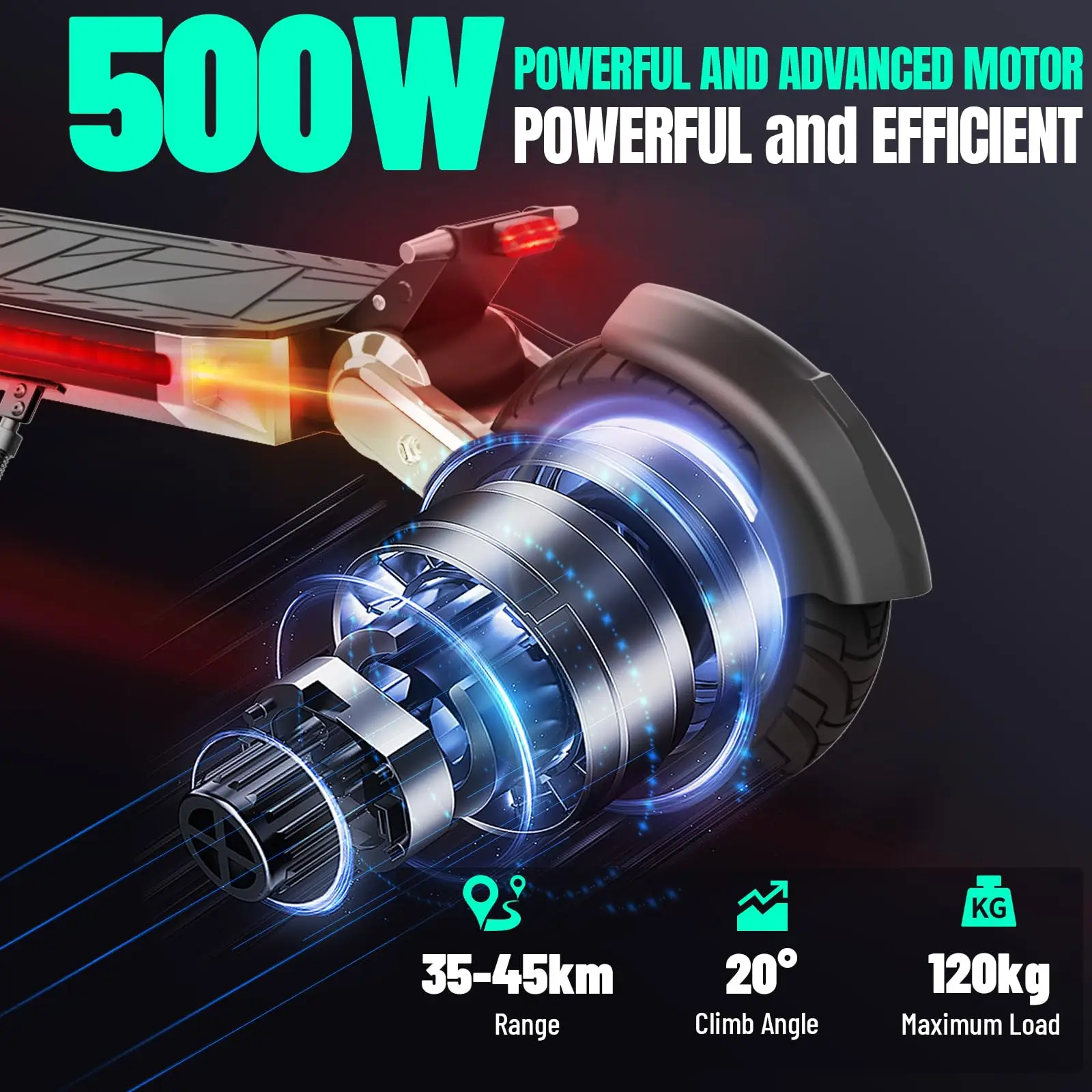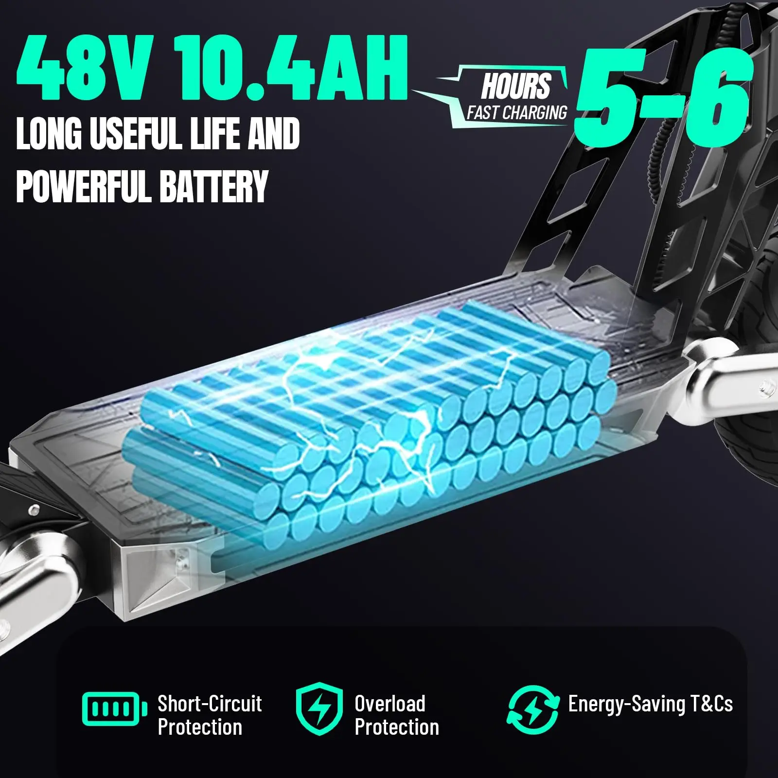 【Compact & Convenient Folding Design】This adult scooter electric is built with a convenient folding mechanism, weighs 21.9kg.The folding electric scooter design is perfect for those who need a portable, easy-to-store option.