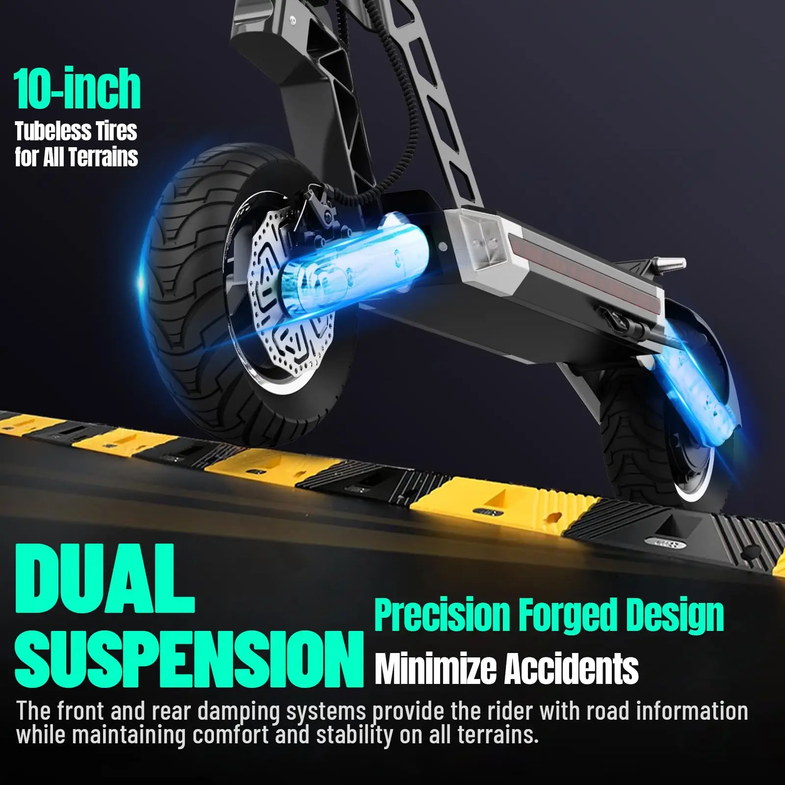 【Safety & Comfort】G2 scooter electric includes a full suspension system and mechanical disc brakes. Safety features such as brake lights and a front headlight enhance visibility, ensuring you stay safe at all times.