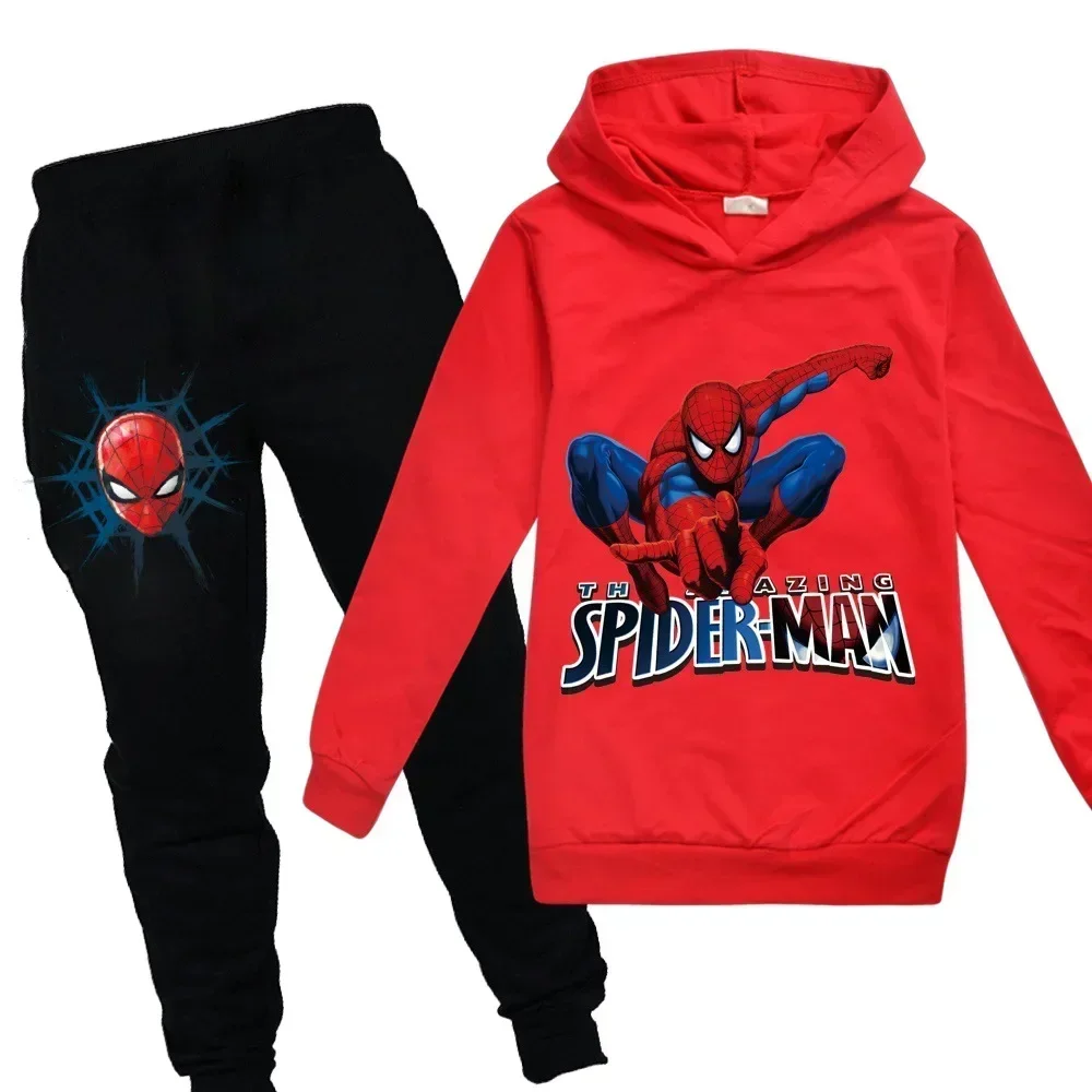 Marvel Spider Man Kids Boy Girl Hoodies Pants Suit Cartoon Spiderman Print Children’s Clothing Set Sweatshirts Casual