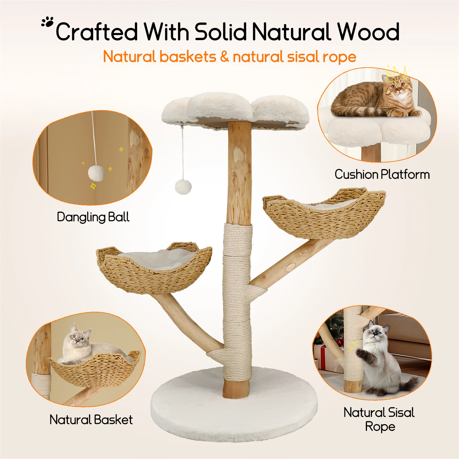 Material: Plush (Polyester) + Sisal Rope + Paper String + Particle Board + Willow Wood