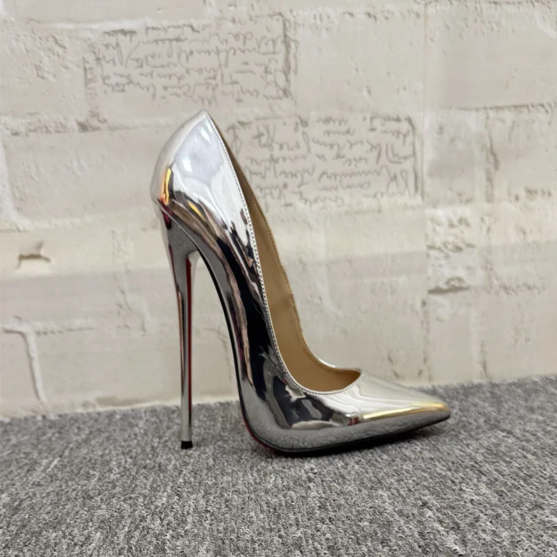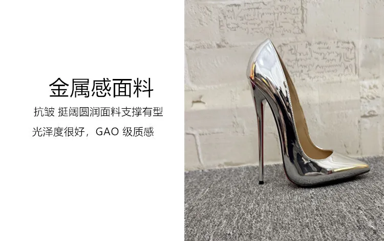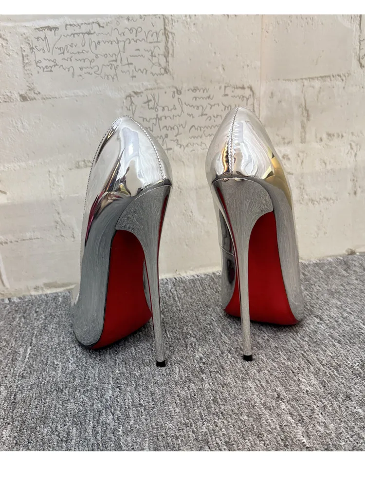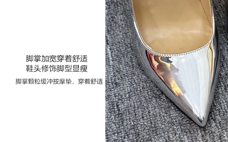 new 12cm thin soled slim heel metallic silver mirror shallow high-heeled shoes elegant ladies party sexy plus size womens shoes