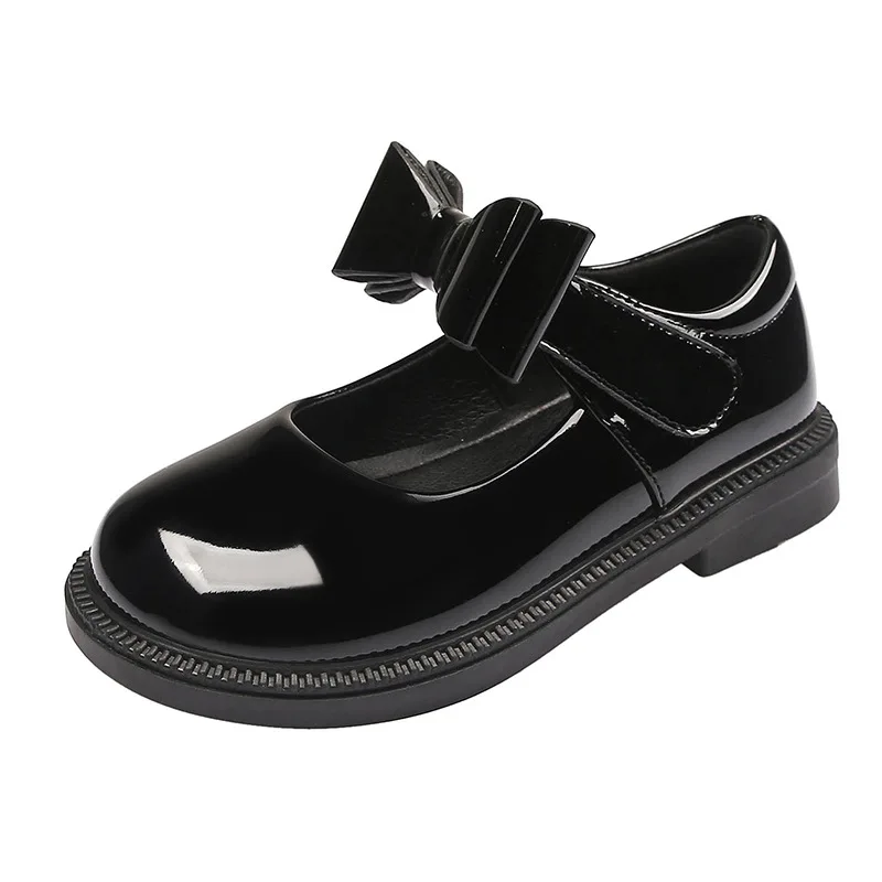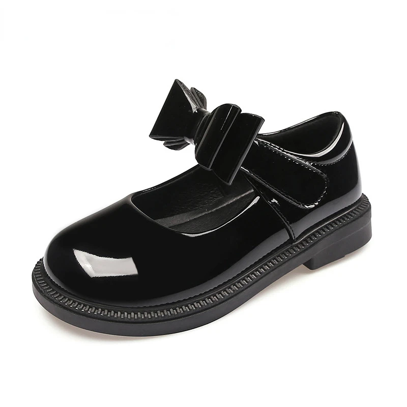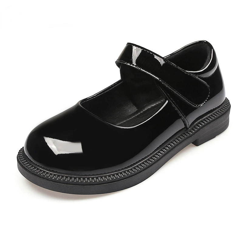 New Girl Leather Shoes Princess Kid Student School Causal Black Versatile Shoes Hook & Loop Children Glossy Mary Jane Autumn Hot