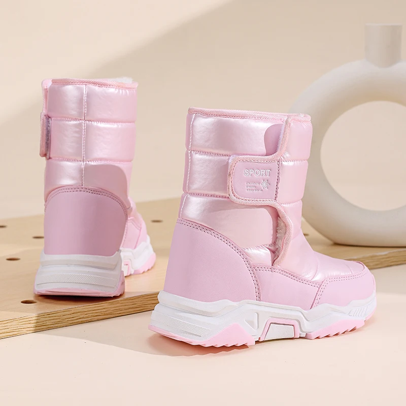 New Kids Snow Boots Winter High-top Warm Cotton Shoes for Children Boys Girls Warm Plush Lining Ankle Boots Anti-skid Waterproof