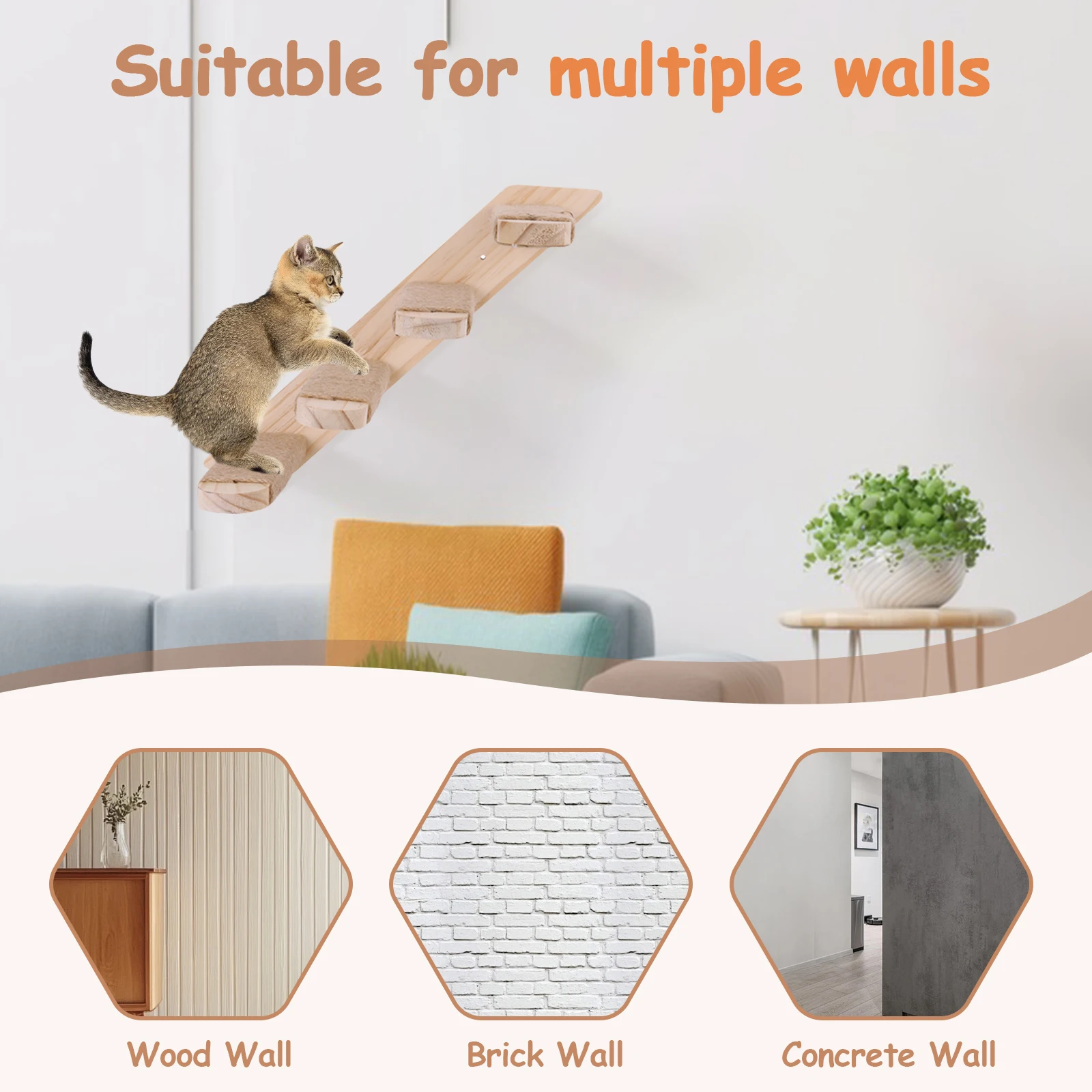 4. Sturdy and Safe: Crafted from natural wood, our cat wall steps are designed to endure energetic play, ensuring your cat’s safety and your peace of mind as they explore and enjoy.