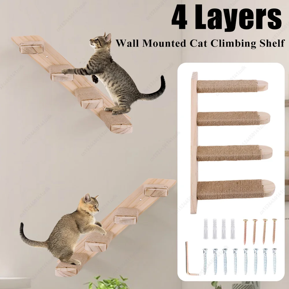 Cat Climbing Shelf Wall Mounted Cat Climbing Ladder Four Step Cat Climbing Frame for Cats Perch Shelves