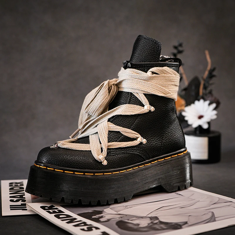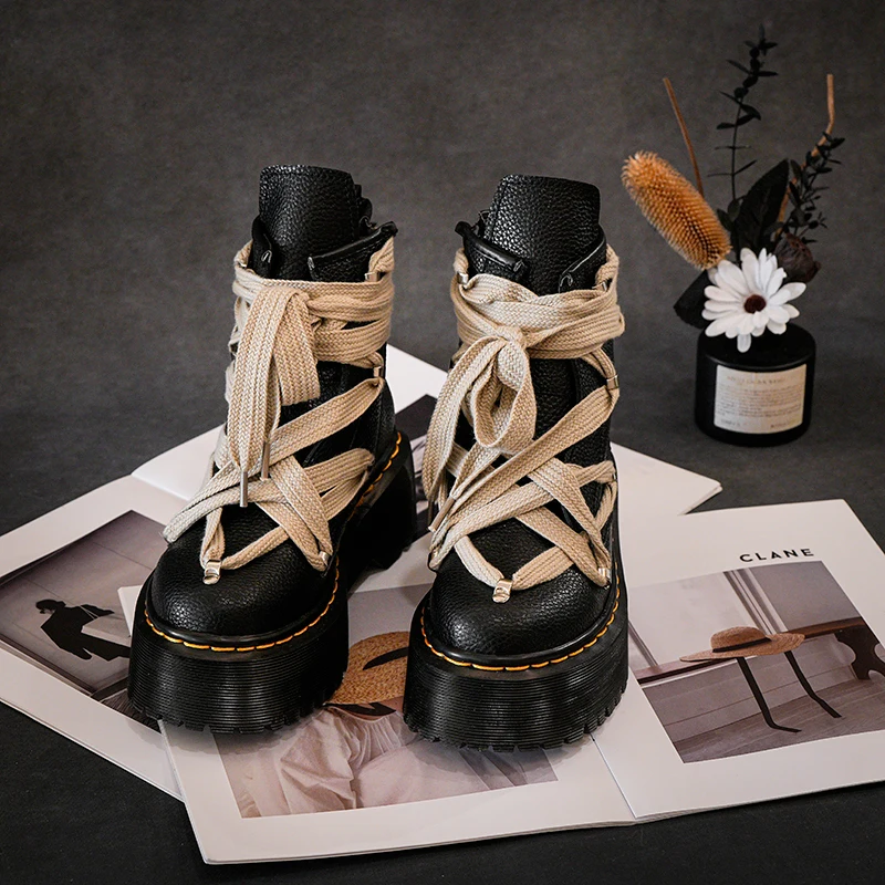New women boots punk style women lace-up high heels 6 cm thick-soled high heels men casual shoes goth boots rock boots 35-45