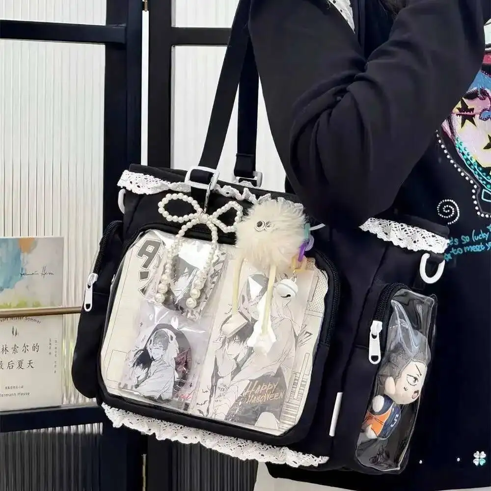 New Y2K Cute Japanese Ita Bag Lolita Girl Transparent Shoulder Tote Bag Large Capacity Crossbody Casual Bag DIY Display Handbags