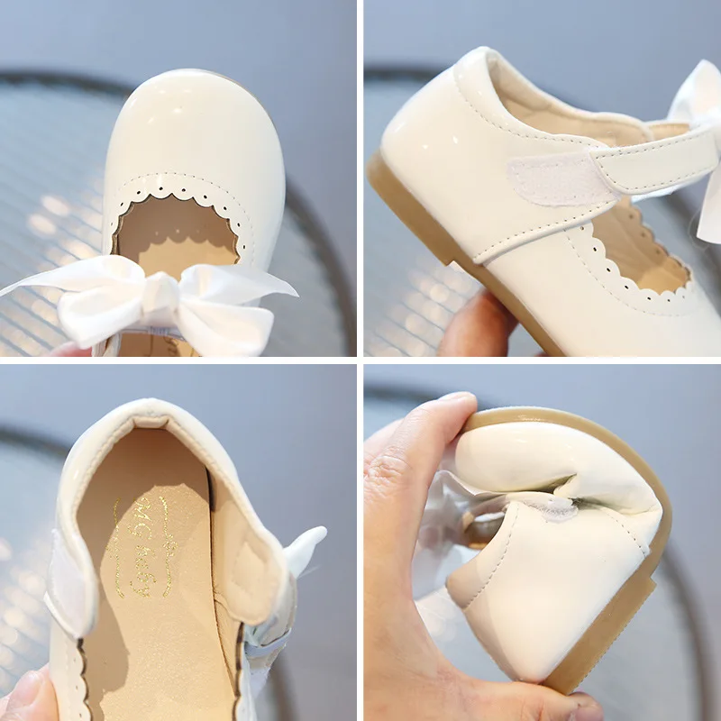 Newest Spring Autumn Baby Girls Fashion Patent Leather Big Bow Princess Mary Janes Party Shoes Solid Color Student Flats Shoes