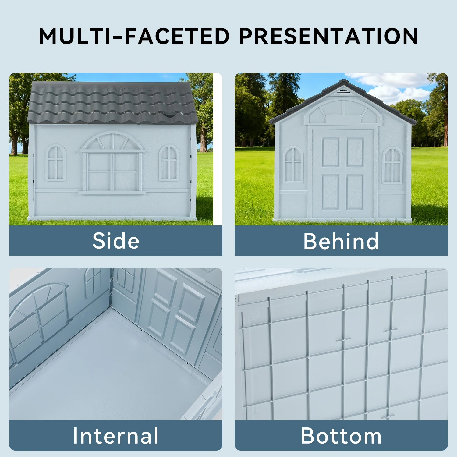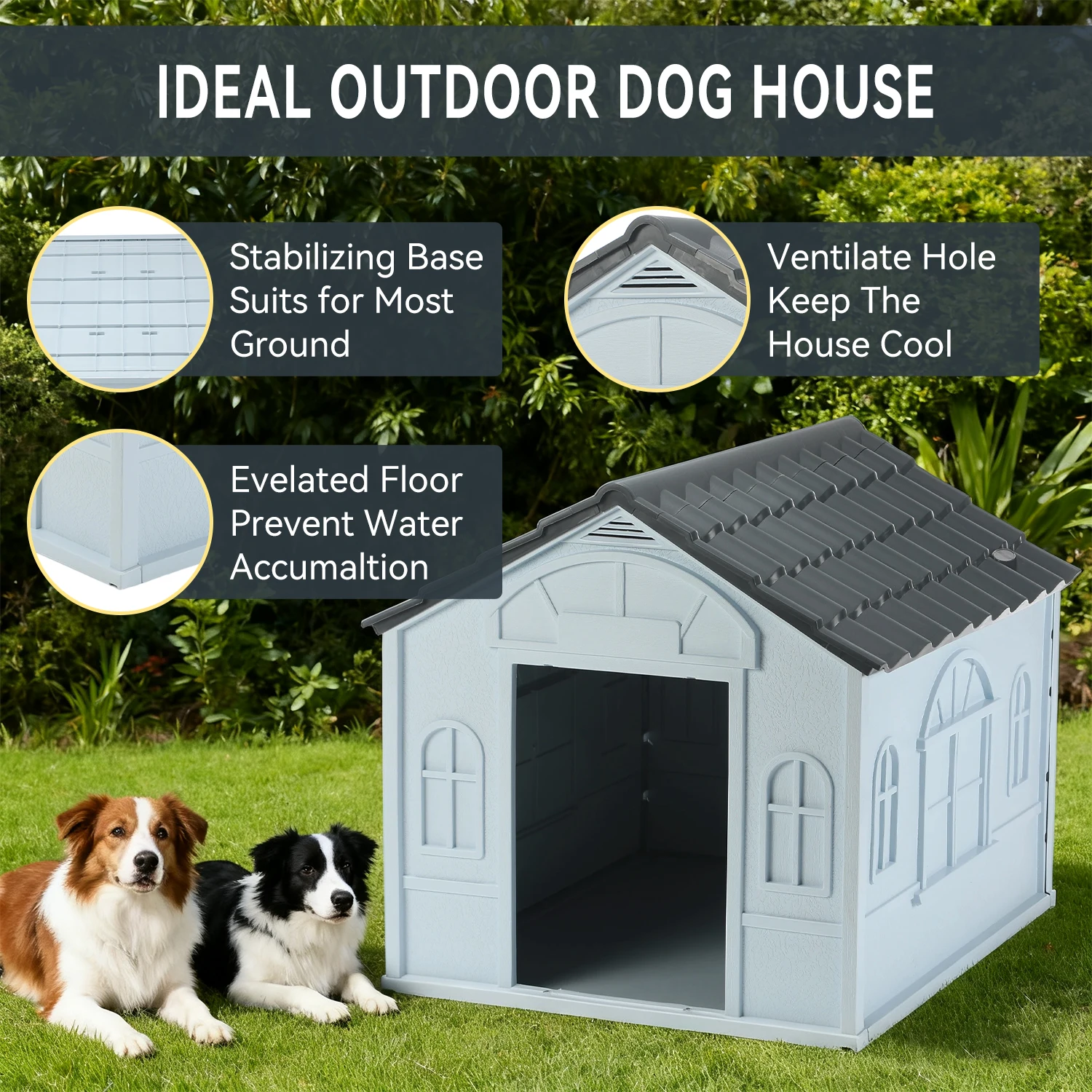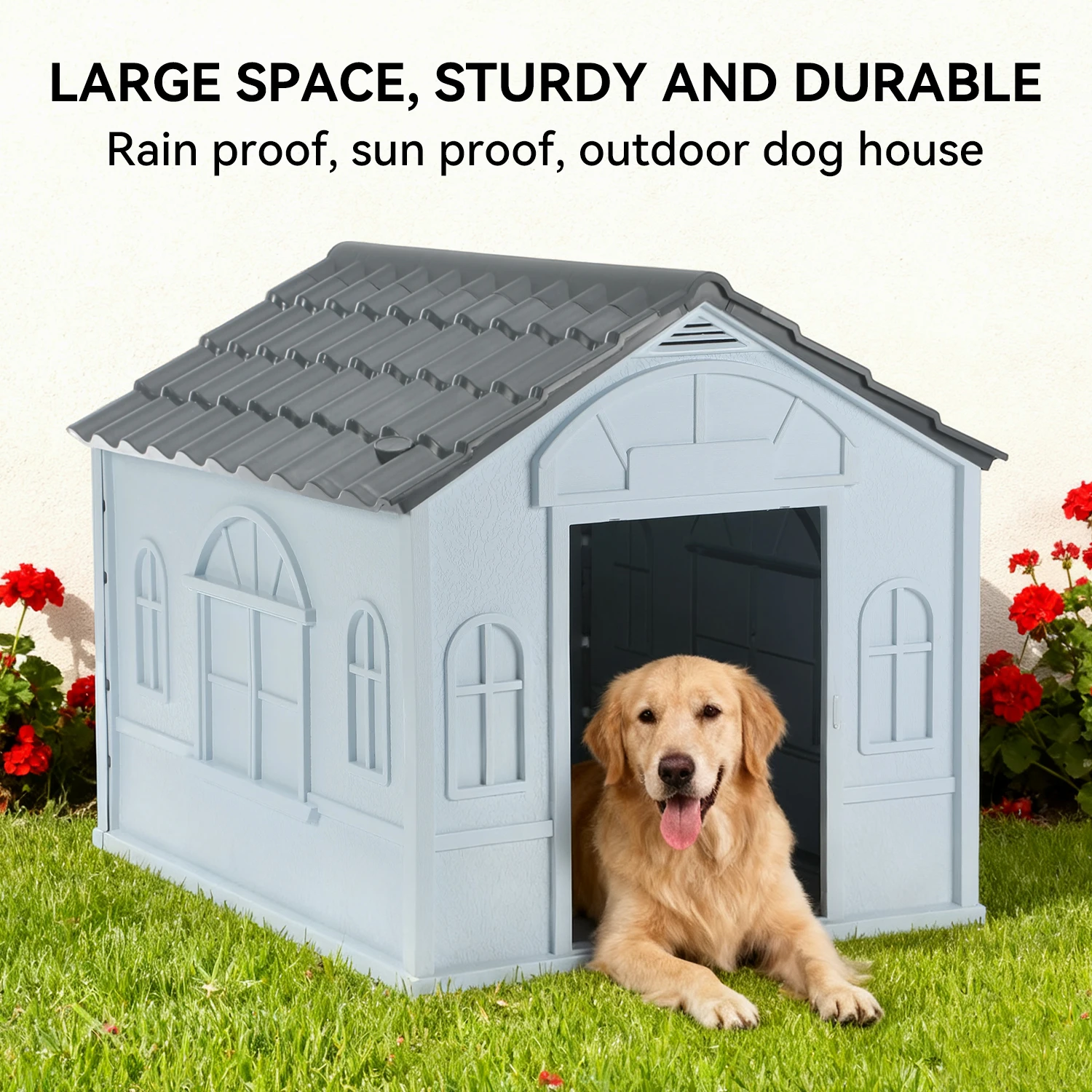 【Stylish appearance】this PP dog kennel has cute window detailing for a fancy design, this dog kennel fits seamlessly in your garden, making your outdoor space inviting for pets.