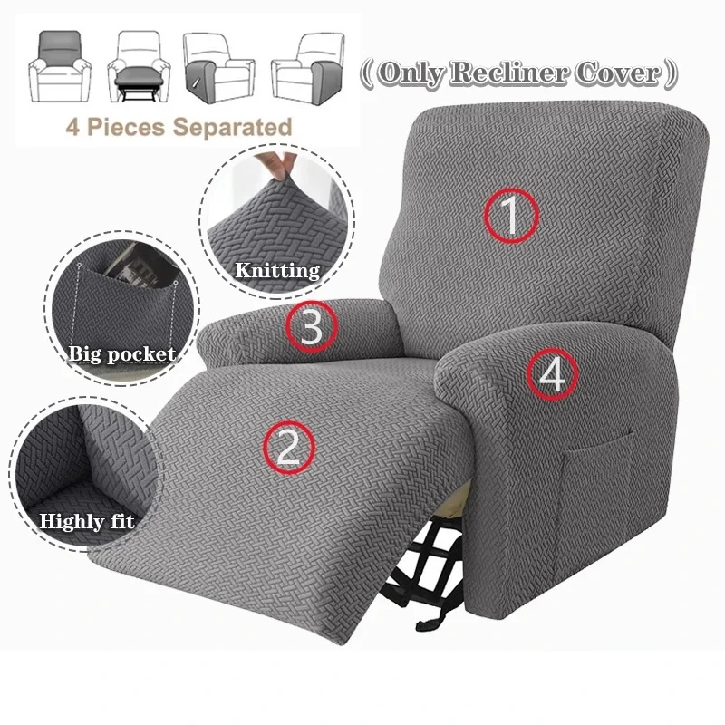 Recliner Sofa Cover Lazy Chair Solid Color Cushion Cover Sofa Cover 1/2/3/4 Seat Texture Stretch Sofa