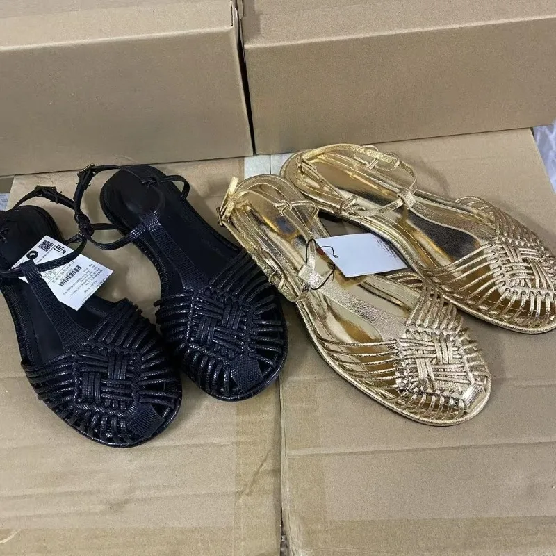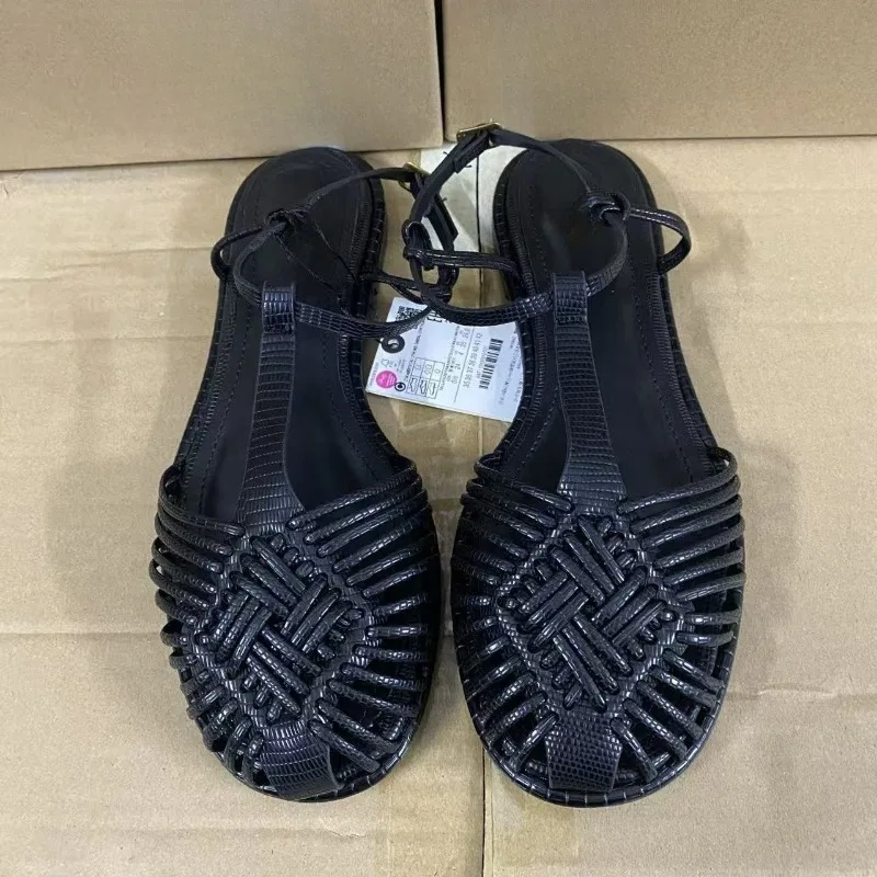 Retro Braided Hollow Out Flat Women Roman Sandals Soft Leather Round Toe Ankle Buckle Strap Casual Brand Summer Lady Beach Shoes