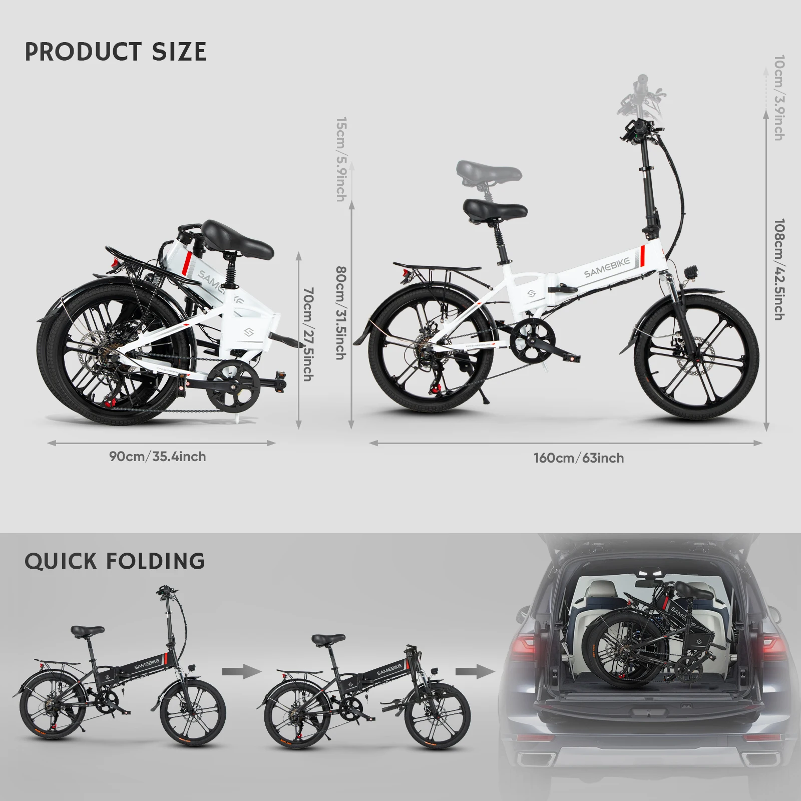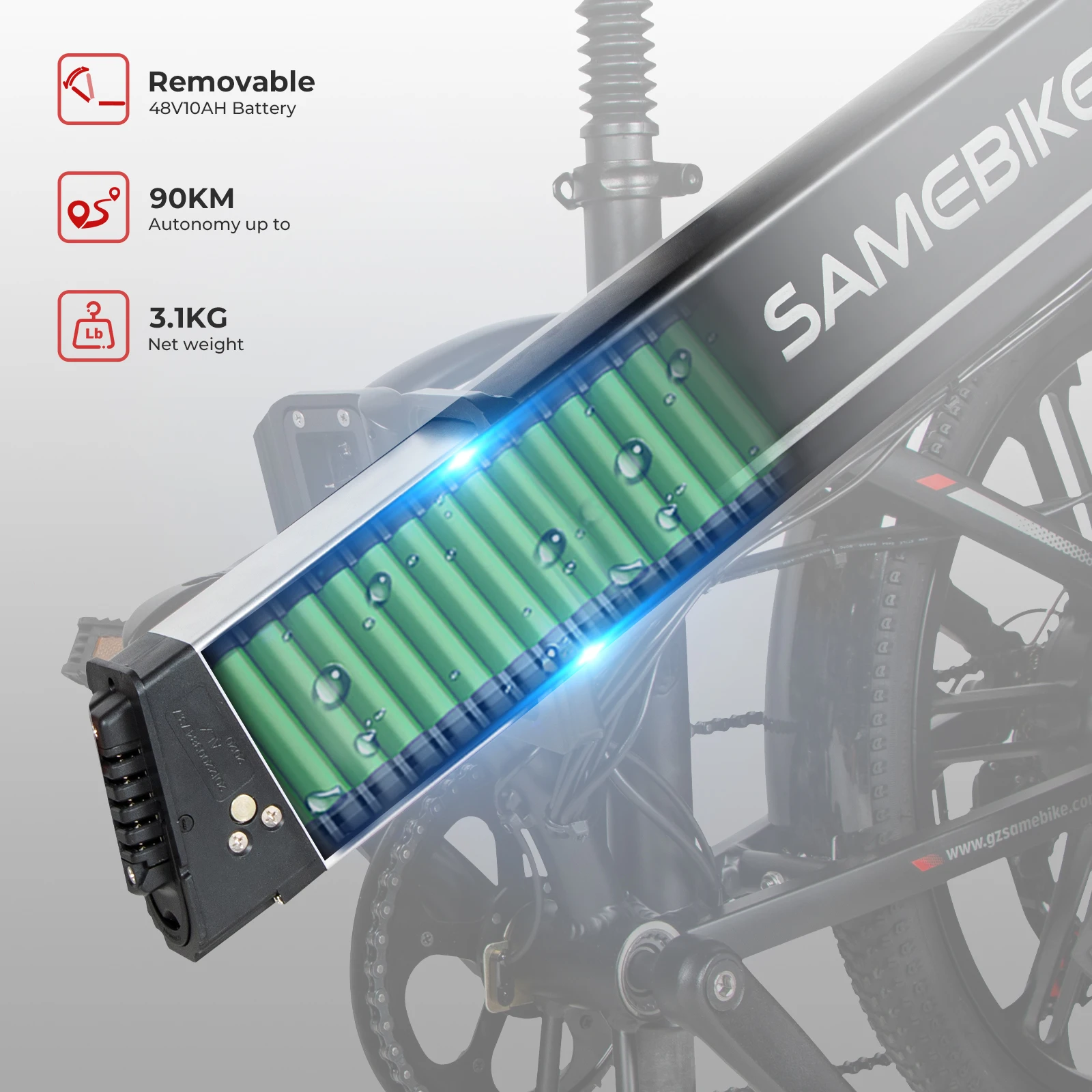 Samebike Folding Electric Bicycle 350W Motor 48V10Ah Removable Battery 20*1.95 Inch Tire Ebike City Commuter Adult Electric Bike