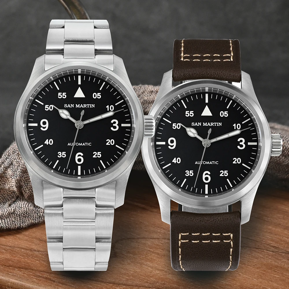 San Martin Men Pilot Watch 37mm Miyota 8215 Fashion Simple Style Military Automatic Mechanical Watches 100m Waterproof BGW-9