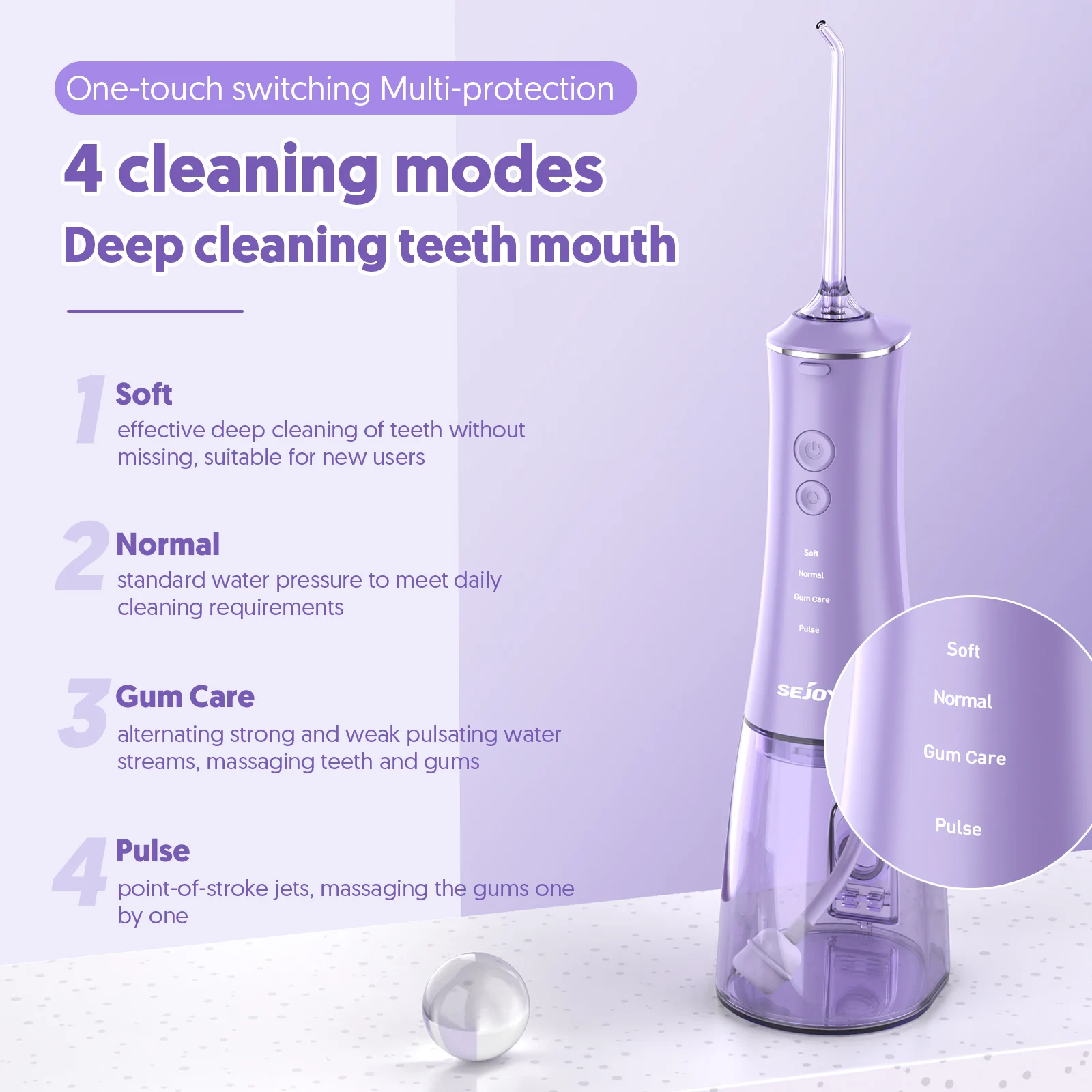 SEJOY Portable Oral Irrigator Water Flosser Dental Teeth Whitening 230ML Tank 5 Modes 8 Jet Tips Washing Machine