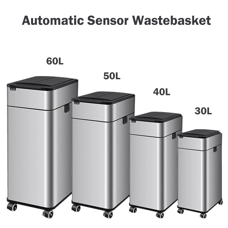 Smart Trash Can 20 30 40 50 60 Liters Wastebasket Large Kitchen Garbage Cube Home Automatic Stainless Steel Garbage Bin Dustbin