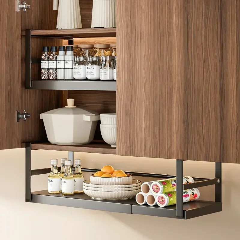 Stainless Steel Shelves Adjustable Spice Stand Storage Room Kitchen Metal Expansion Cabinet Kitchen Hanging Seasoning Rack