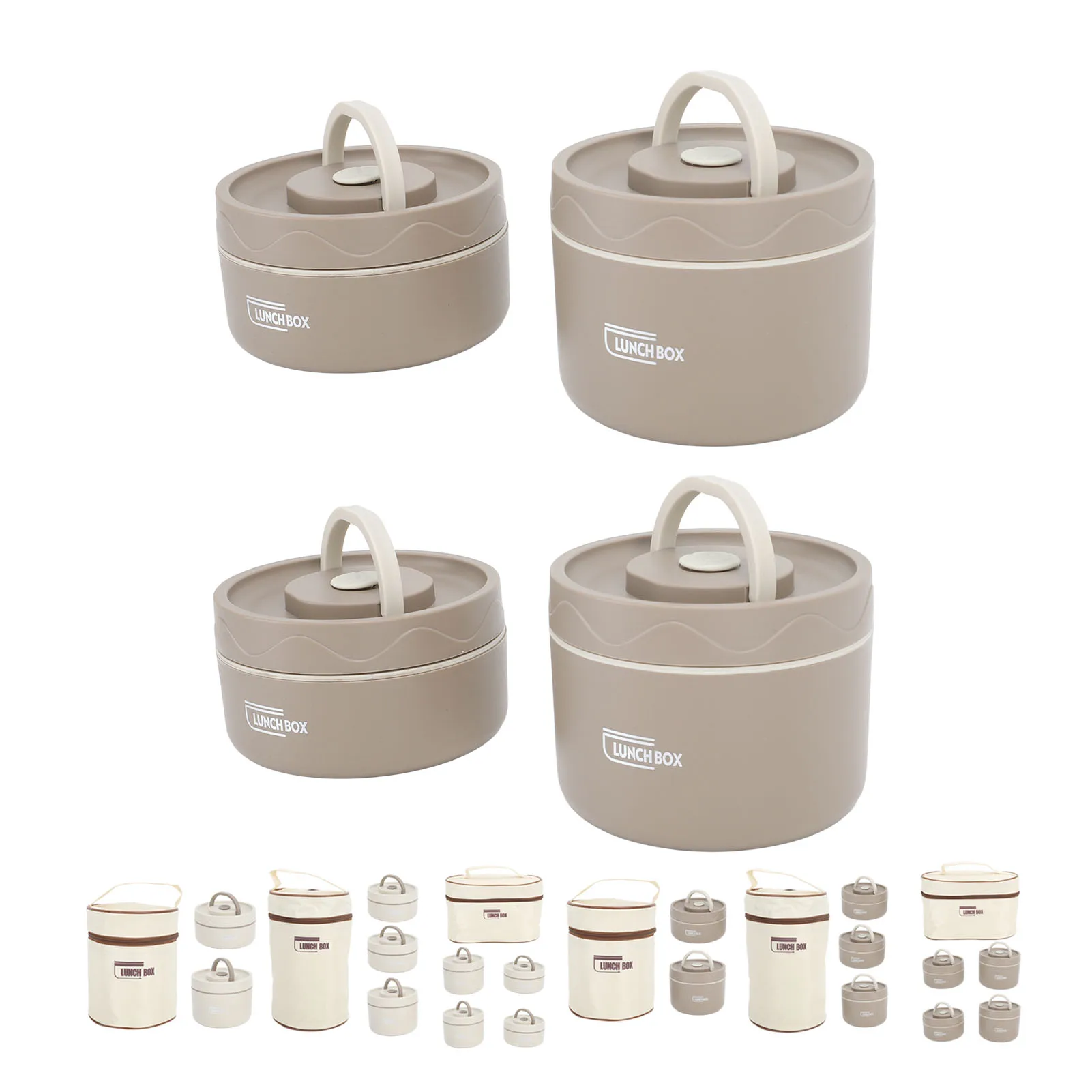 Insulated Lunch Container 304 Stainless Steel Sealed Multifunction Portable Round Thermal Bento Box with Thermal Bag