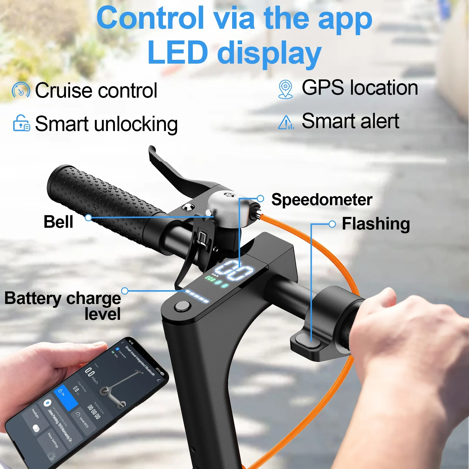 【10.4Ah battery & APP control】 The TODIMART T3 adult electric scooter is attacking the market. 280.8Wh lithium battery allowing you to travel 30-35KM in one charge. The LCD color screen clearly shows information such as battery capacity, speed and mileage, let you ride without worry. Thanks to the Bluetooth connection, you can use many functions via the app, such as lock/unlock, custom maximum speed, cruise control, etc. (The electric scooter T3 also fits for children aged 12 to 15 years