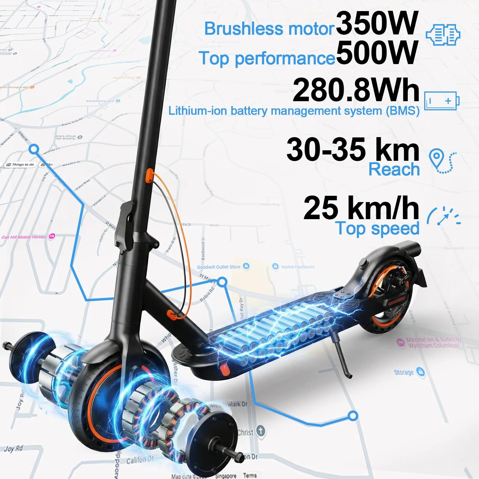 【Peak Power 650W & 25KM/H】T3 adult electric scooter is ideal for travelling on daily trips with 350W brushless motor, allows you to enjoy quiet driving and climbing capacity at 25° (the maximum power can reach 650W); three speed modes up to 25 km/h. The three speeds are 10/2. 0/15. 5mph by default, and you can also adjust the speed according to your needs.In addition, the electric scooters is equipped with cruise control mode and anti-theft functions (TODIMART ensures free after-sales service, unconditional free return, free replacement!)
