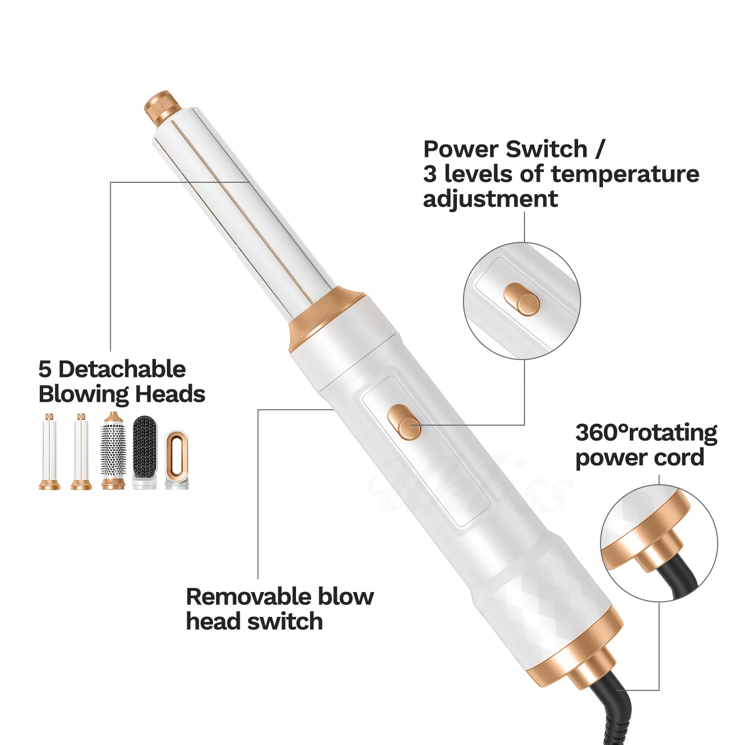 UKLISS Airstyler Pro 5 in 1 Hair Dryer Set, Hot Air Curling Brush, Straightener, Thermal Brush