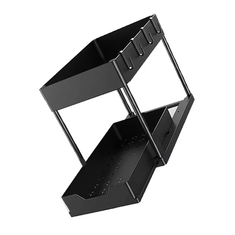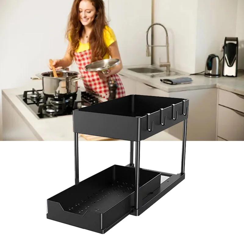 2. Convenient Pull Out Design: This under sink storage rack features a practical pull out design, allowing for easy and quick retrieval of your items. Say goodbye to rummaging through cluttered cabinets.