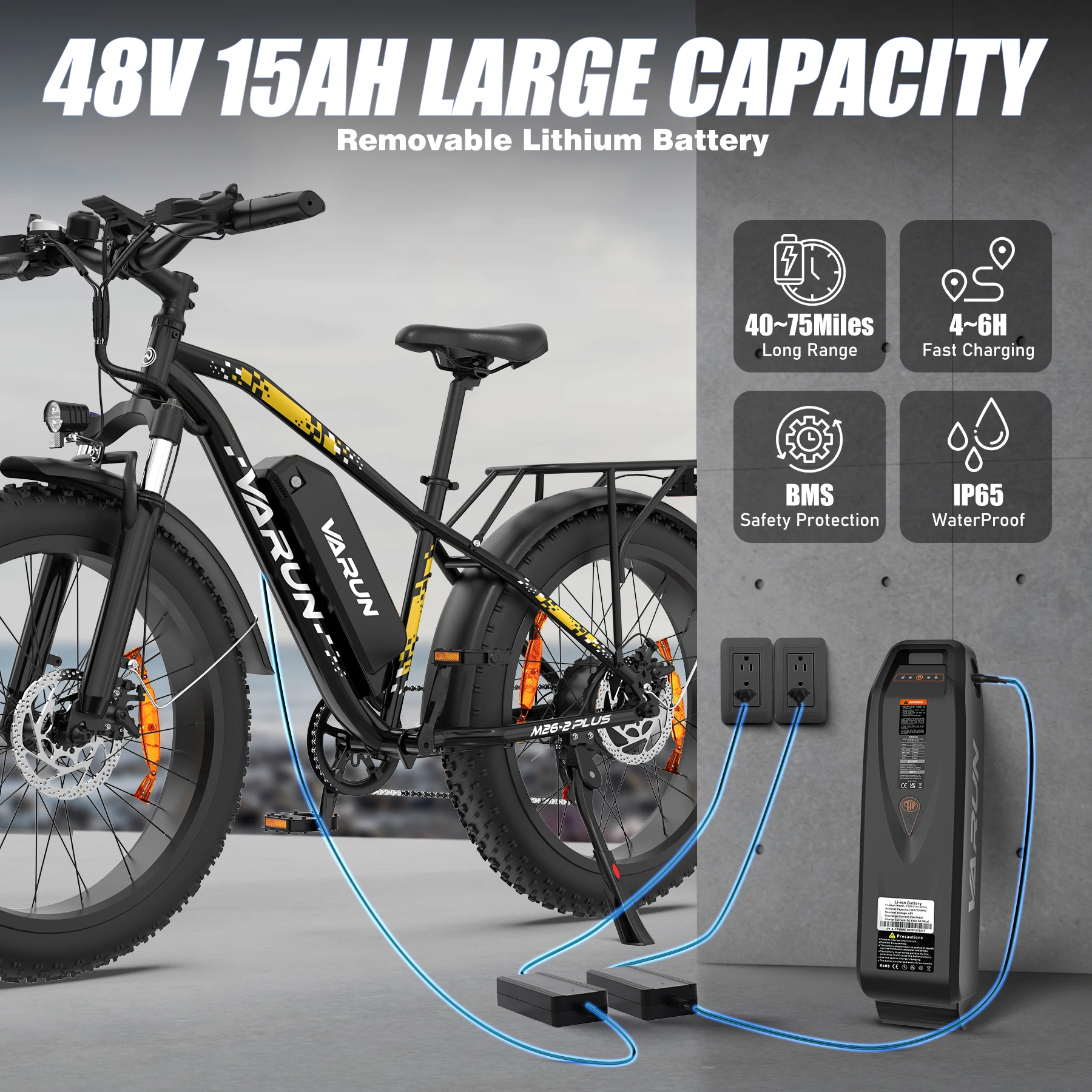 Varun M26-2 PLUS E-bike 250W Motor 48V 15Ah Removable Battery 26*4.0 Inch Fat Tire Electric Bicycle Mountain Snow Electric Bike