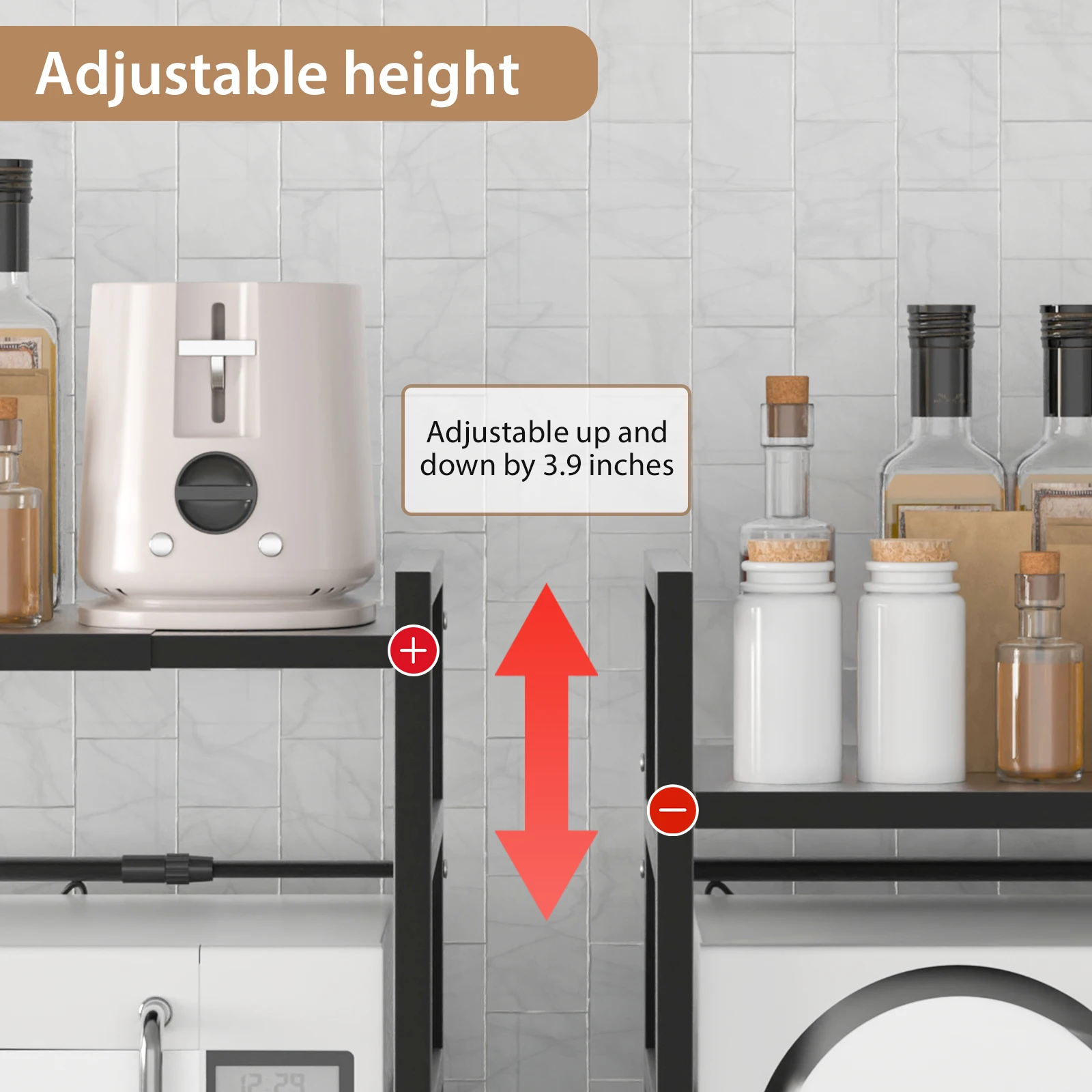 The length and height of the microwave rack for the kitchen can be extended, the length ranges from 40-60cm,Shelf depth is 36cm. The length and height of the shelf can be freely adjusted according to your needs