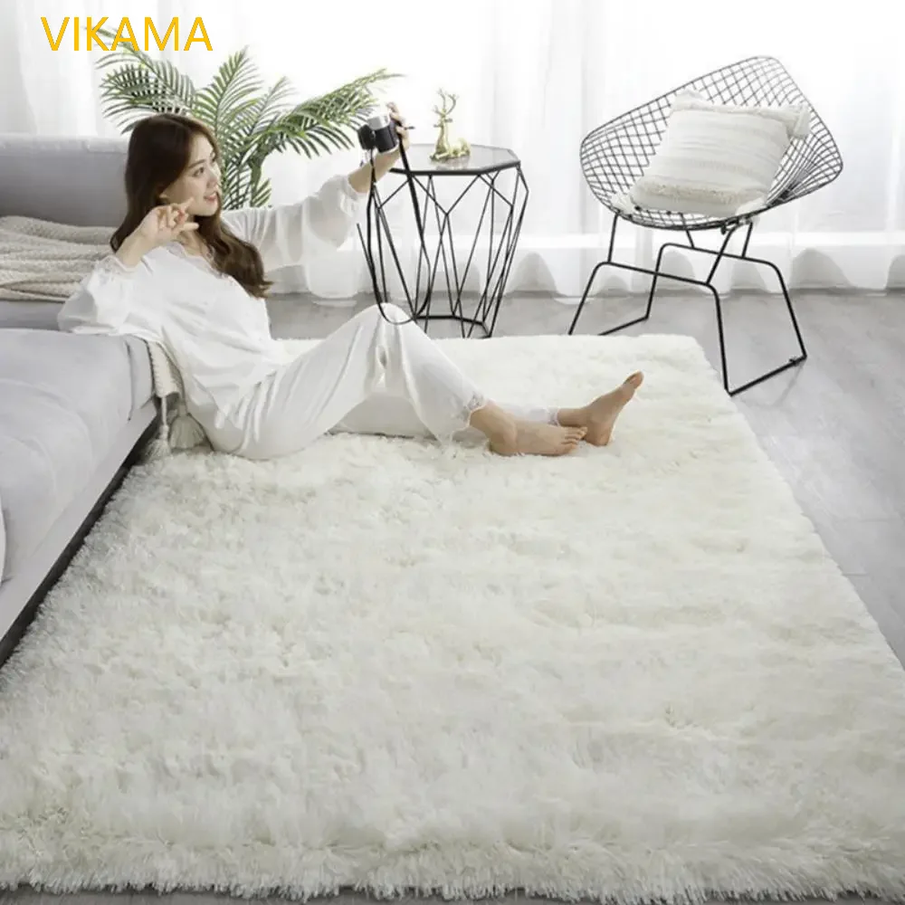 VIKAMA Silk wool Solid Colour Living Room Bedroom Bedside Sofa Soft Mat Home Light Luxury Non-slip Dirty Resistant Washable Rug