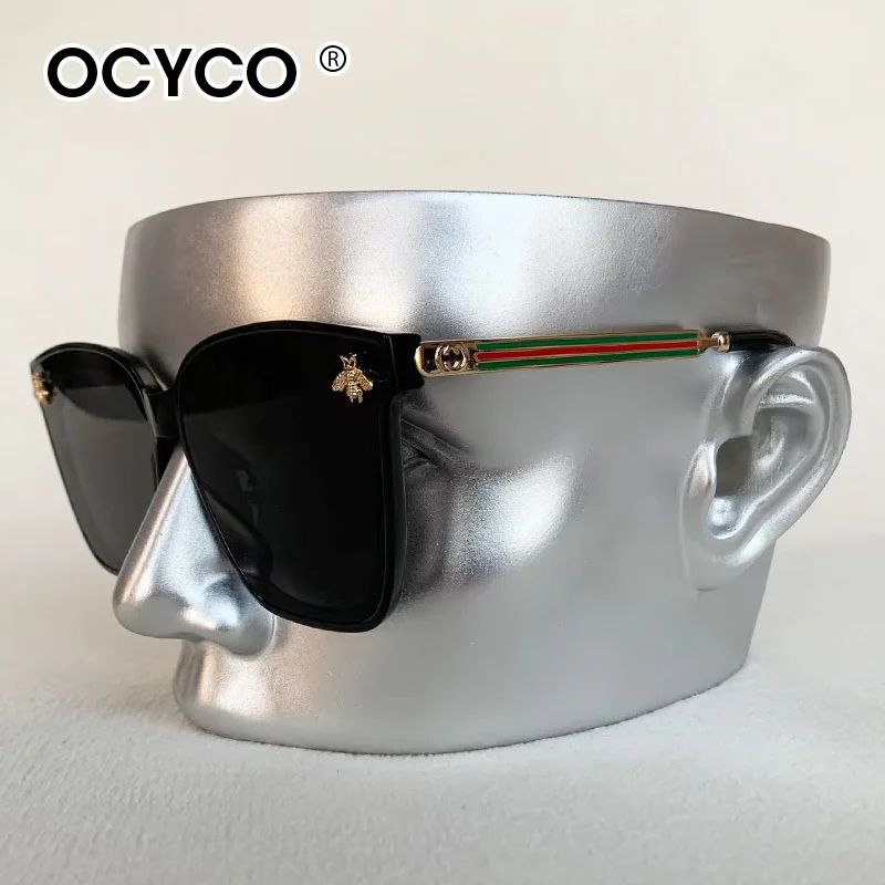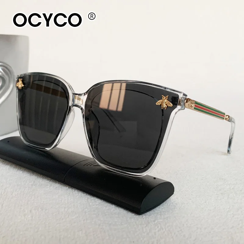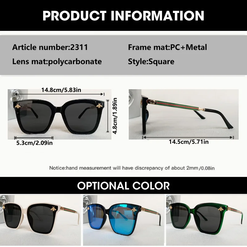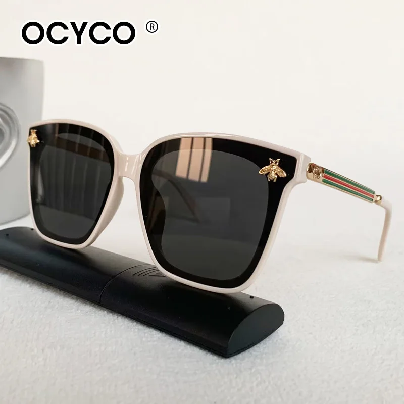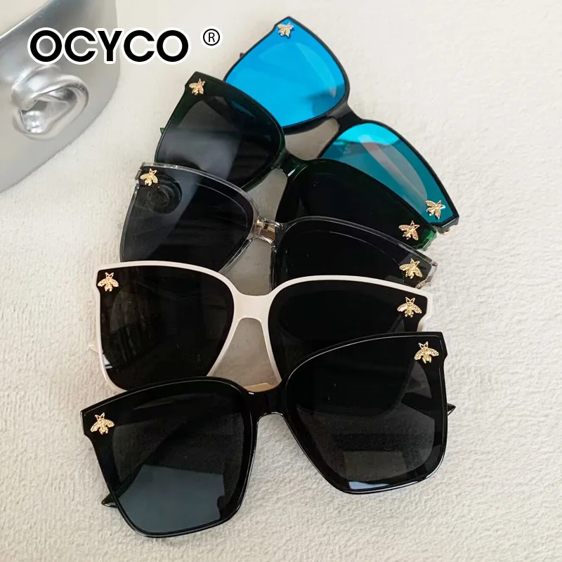 Vintage Square Bee Sunglasses Men Women Luxury Brand large frame Sun Glasses UV400 Fashion Female Shades Driving Eyewear