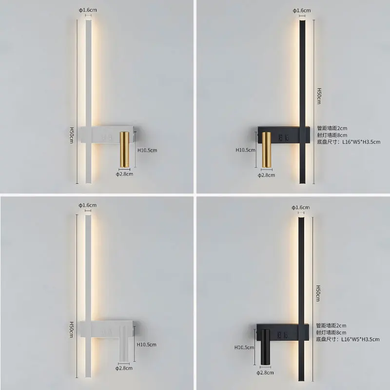 Wall lamp Nordic modern black and white LED minimalist living room sofa background wall decorative lamp light luxury creative bedroom bedside