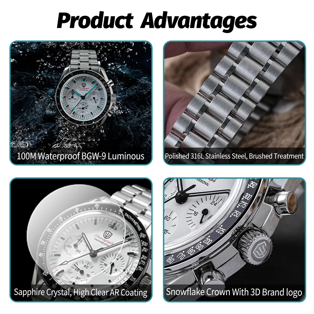Bubble faced sapphire crystal watch mirror, Mohs hardness level 9 (second only to diamond), wear-resistant and scratch resistant, long-lasting transparency. The surface is coated with high transmittance and anti reflection (AR) coating, which can reduce reflection glare even under strong light, making reading easy and daily timing super convenient.