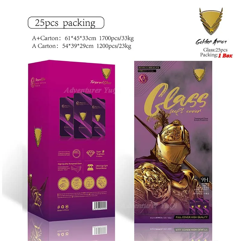 1 Box 25 pcs Glass For iPhone 17 Air 16 16e 15 14 13 11 Screen Protector Golden Armor Premium 12 Pro Max Full Glue Tempered X XR XS 6 6s 7 8 Plus Wholesale