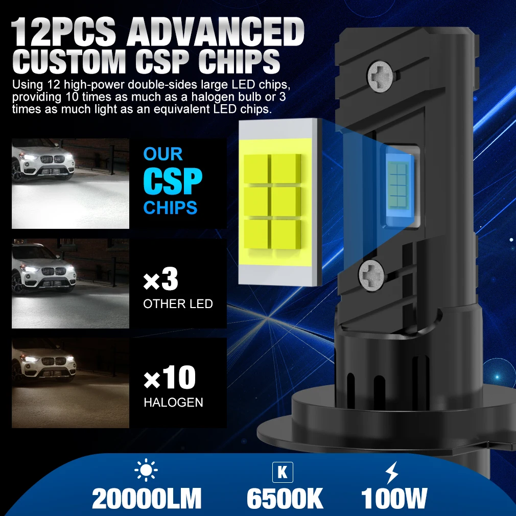 XSTORM 2PCS H7 LED Headlight Bulb 100W 20000LM CPS LED Canbus Auto Lamps 6500K LED Lights Bulb For Car 12V Truck Headlight