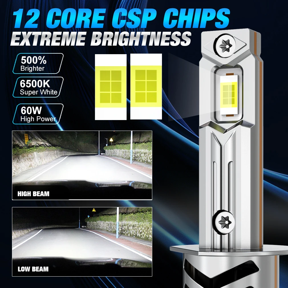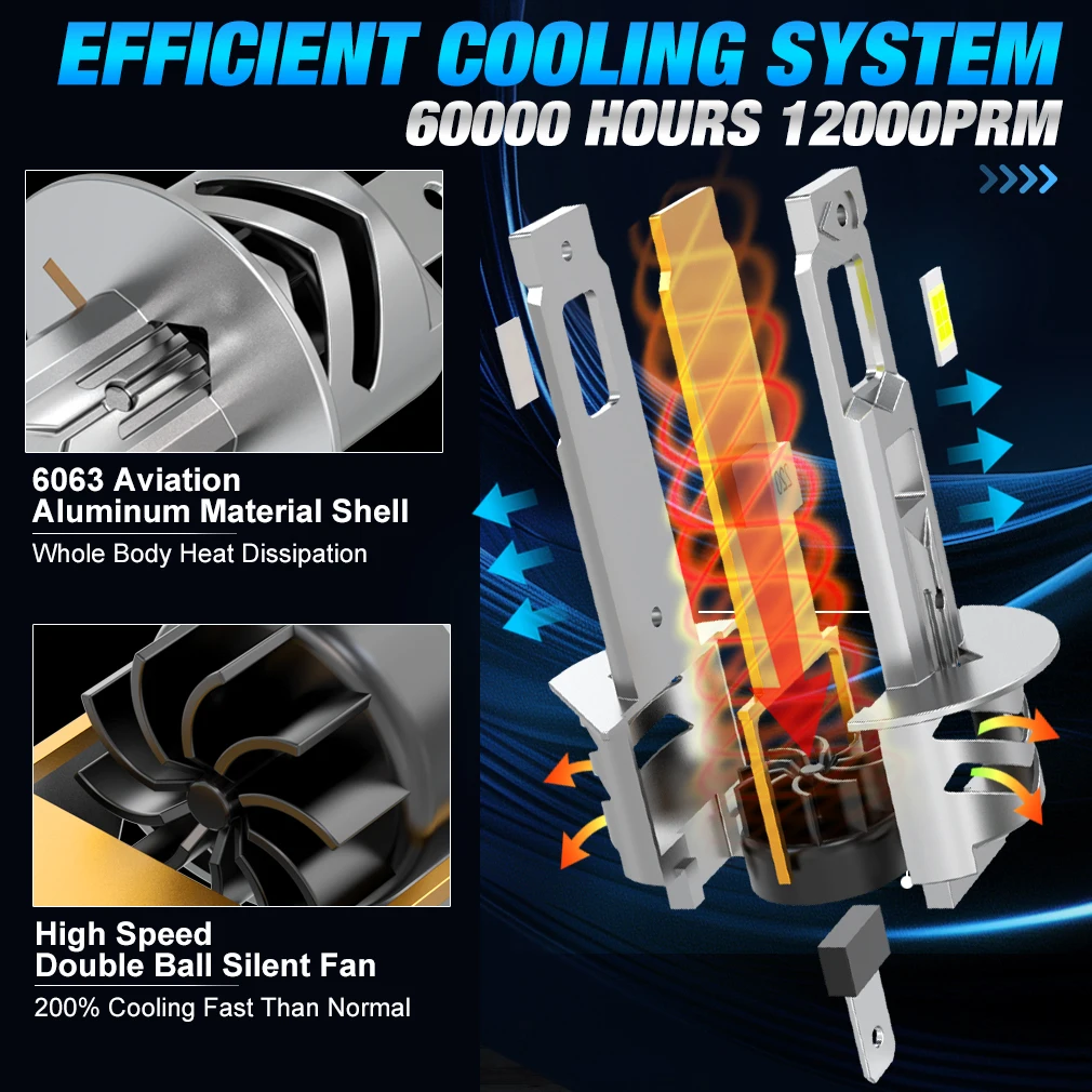 XSTORM H1 LED Lights Bulbs Canbus 60000LM 100w H3 H7 LED Headlight With Fan H1 Turbo Lamps Car Headlights Plug & Play 6000K 12V