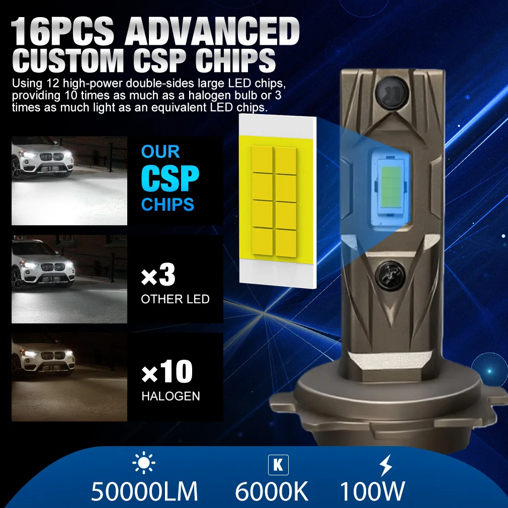 XSTORM H7 H1 LED Headlight Bulbs Car Fog Lights 60000LM 100w CSP H7 LED Lights Canbus Auto Diode Lamps 12V 24V 6000K Plug&Play