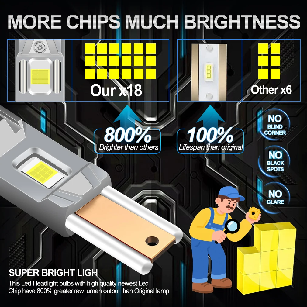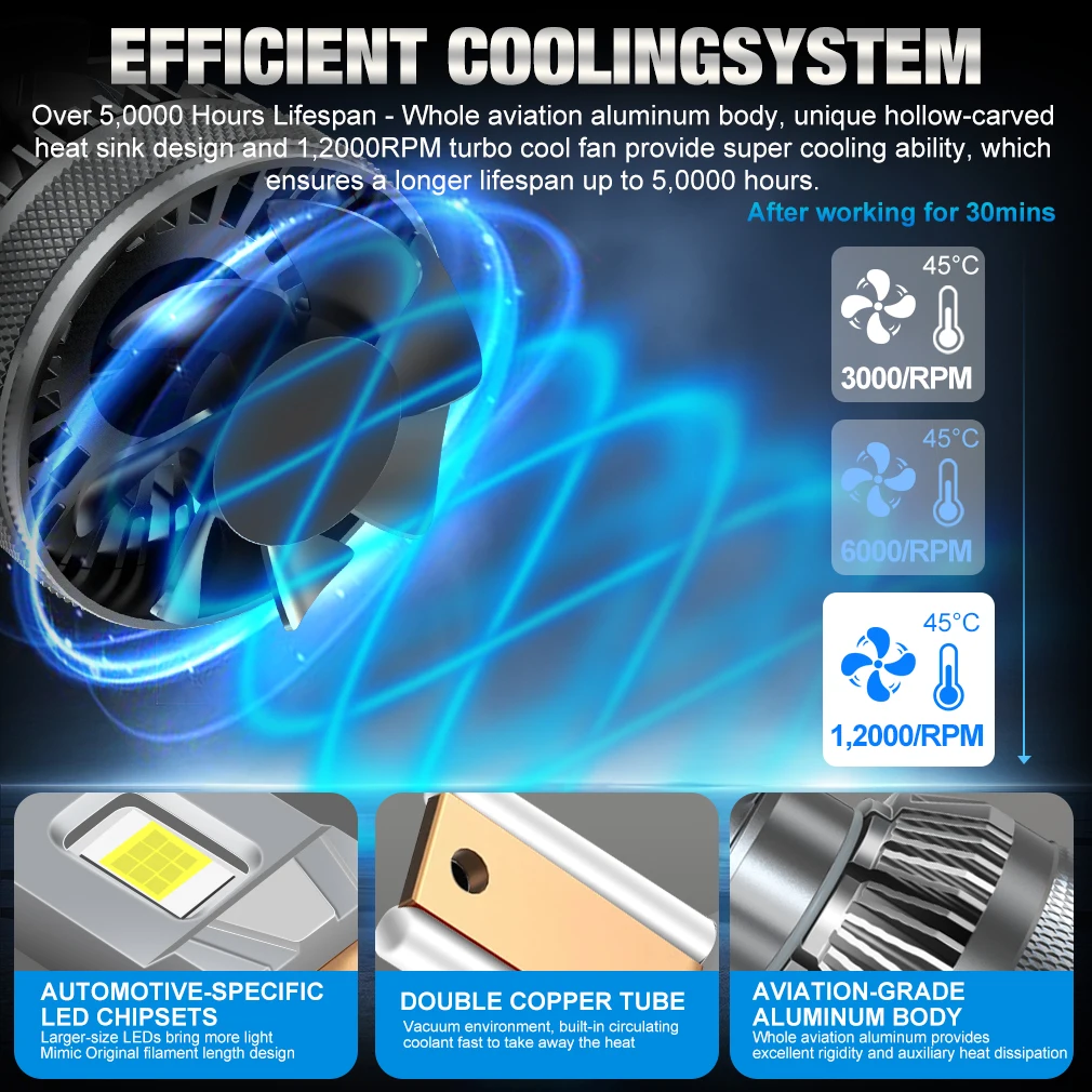 XSTORM H7 LED Headlight 30000LM 100W Car Light Bulbs LED H4 Headlight Canbus H1 H11 9005 9006 Car Turbo Light 6500K 12V 24V